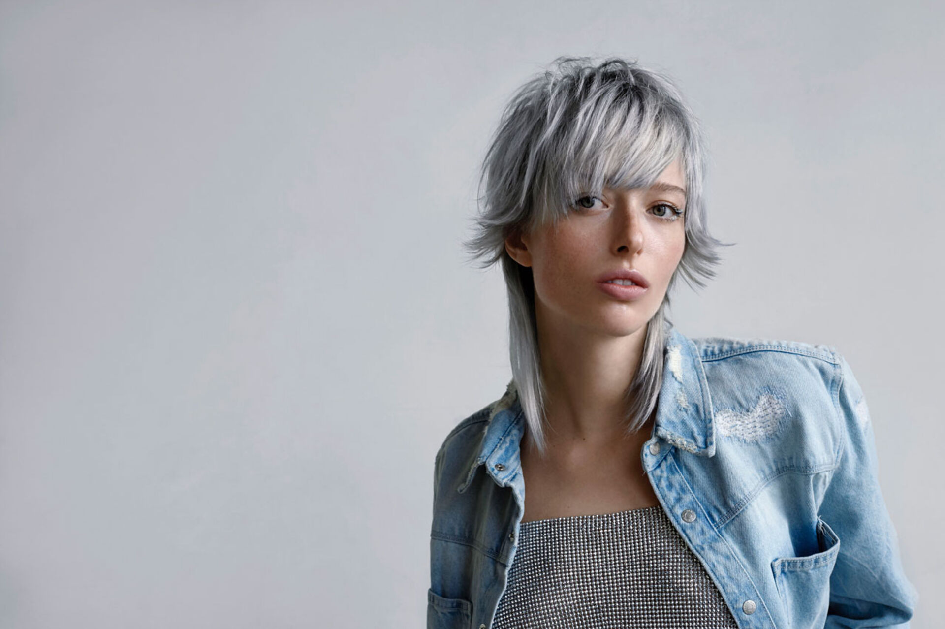 Prodigy of Time: Der progressivste Look der Trendkollektion. Der stark von den 80er-Jahren inspirierte Mullet ist am Oberkopf texturiert und zeigt sich in einer coolen Metallic-Nuance. Um nicht vom metallischen Look abzulenken, wird der Lidstrich auf die Haarfarbe abgestimmt oder das Make-up bleibt ganz dezent.
