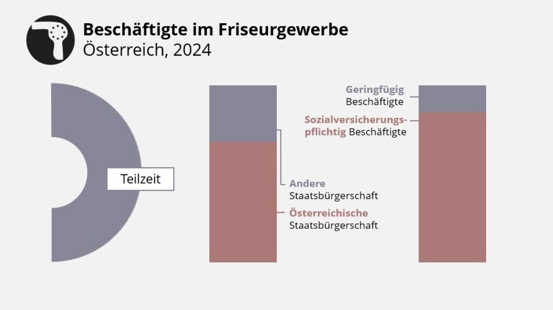 Weiterer Rückgang an Beschäftigten, Teilzeitquote steigt massiv, mehr Männer und Anstieg ausländischer Beschäftigter um 10% zum Vorjahr. Alle Details der Statistik Beschäftigte im Friseurgewerbe 2024 ...