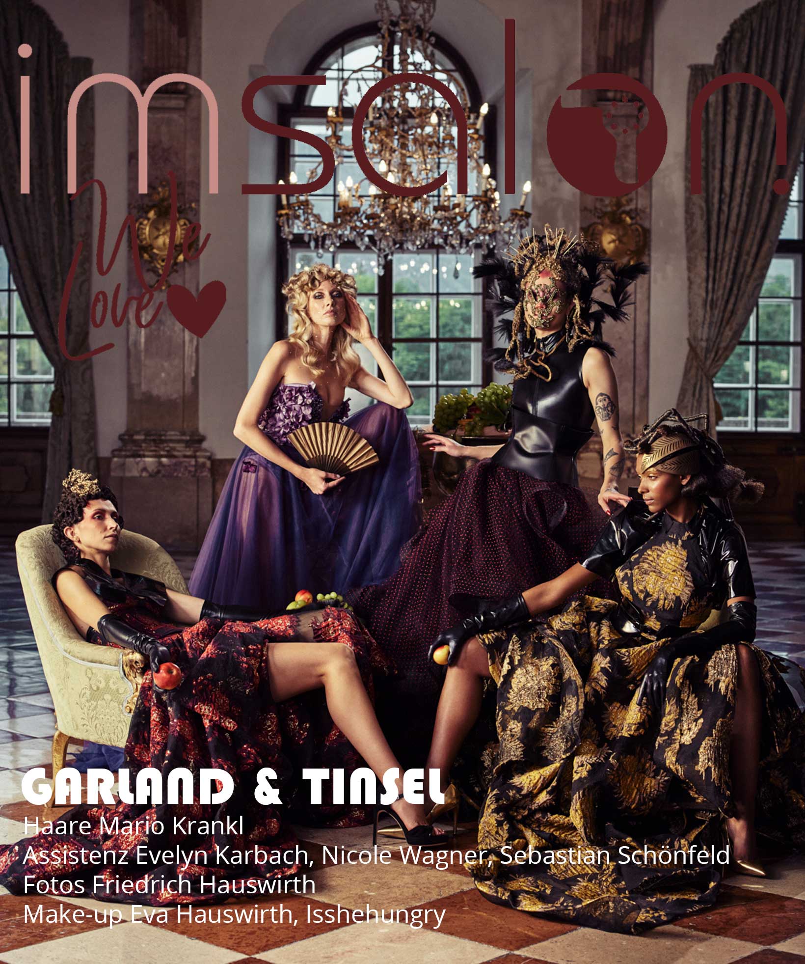 Den Film hat Mario Krankl zusammen mit dem aufstrebenden Filmemacher Daniel Ronacher von Solidshot umgesetzt. Nun folgt der erste Teil der zweiteiligen Fotokollektion aus „Garland & Tinsel“ mit einer Märchenkulisse, der schon Karl Lagerfeld und Chanel nicht widerstehen konnten: das Schloss Leopoldkron in Salzburg. Mario Krankl ist bekannt für seine opulenten Inszenierungen, die ausgehend von den Haaren ein faszinierendes Gesamtbild ergeben. Wer könnte da den „Highfashion Hausherrn“ besser verkörpern als der großartige Make-up-Artist von Björk und selbst Instagram Star @Isshehungry? Die Haute Couture Kleider stammen vom österreichischen Designer-Shootingstar Eva Poleschinksi, deren opulente Red Carpet Roben perfekt in die traumhafte Kulisse passten. Für das Make-up zeigte sich Eva Hauswirth verantwortlich. Mit Friedrich Hauswirth als Director of Photography hatte Krankl ein hochkarätiges Team an seiner Seite.