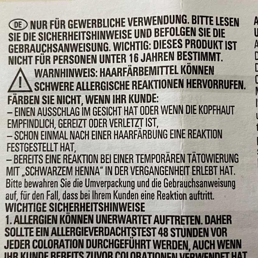 Warum gibt es diesen Produkthinweis auf Haarfarben?