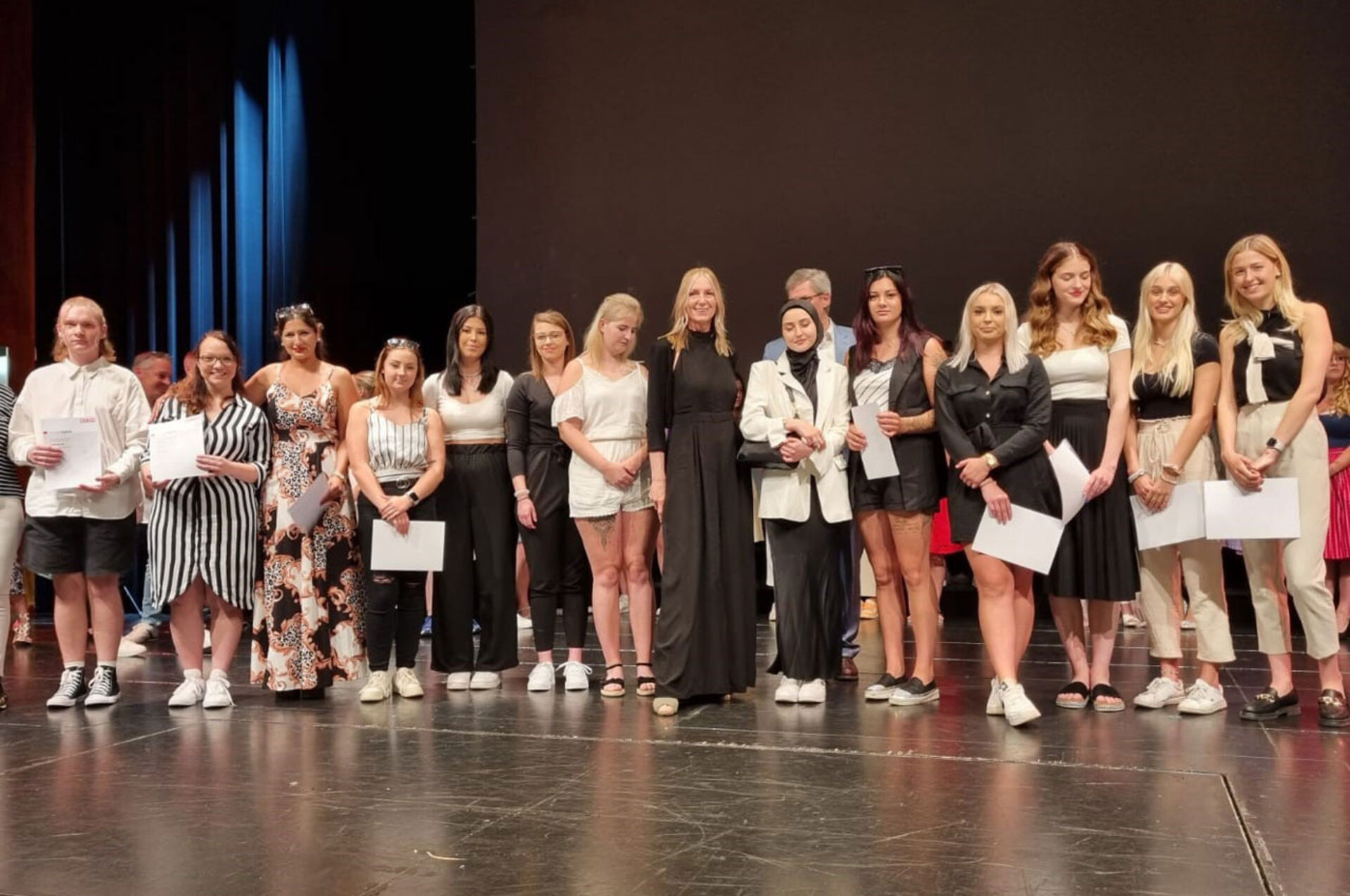 Am 5. Juli wurden im Konzerthaus Klagenfurt die Absolventinnen und Absolventen der Klassen 3a, 3b, 3c, 3d der Fachberufsschule 2 im Beisein ihrer Eltern sowie Unternehmerinnen und Unternehmer aus der Schule verabschiedet und ihr erfolgreicher Schulabschluss gebührend gefeiert. Dazu geladen hatte BD Ing. RegR. Reinhold Moser. Auch Landesinnungsmeisterin ►Karin Wagner zeigt sich mit Stolz im Kreise der Kärntner Friseurlehrlinge.