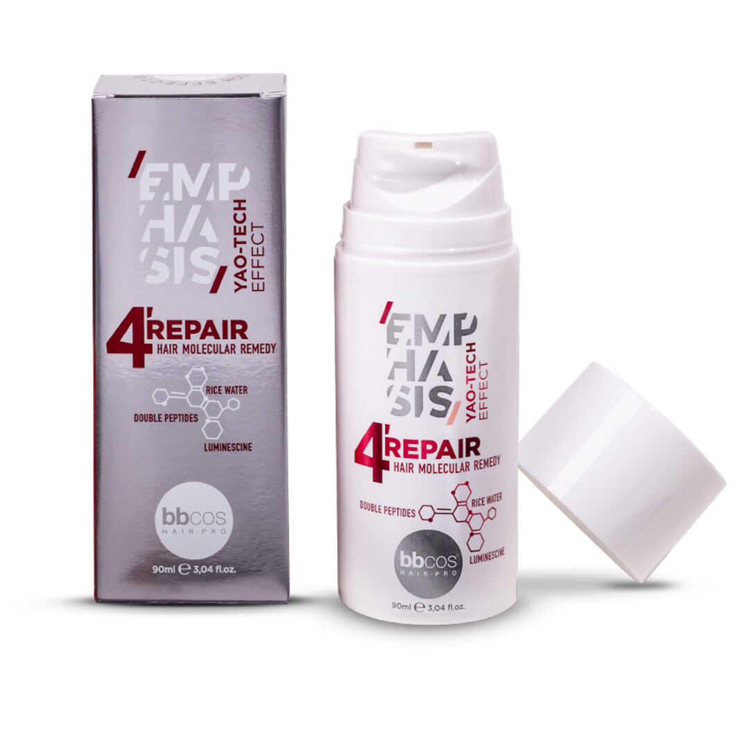 Das Emphasis 4' Repair von bbcos regeneriert beanspruchtes Haar und stärkt es in nur 4 Minuten. Gleichzeitig wirkt das pflegende Leave-In Treatment auf molekularer Ebene und ist ideal für schwaches, beschädigtes oder coloriertes Haar.