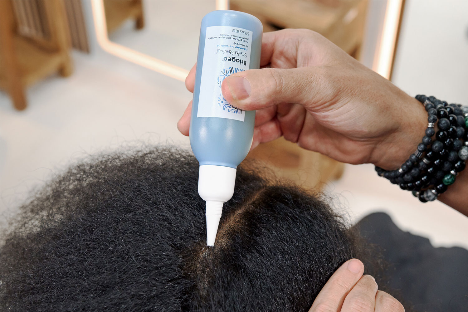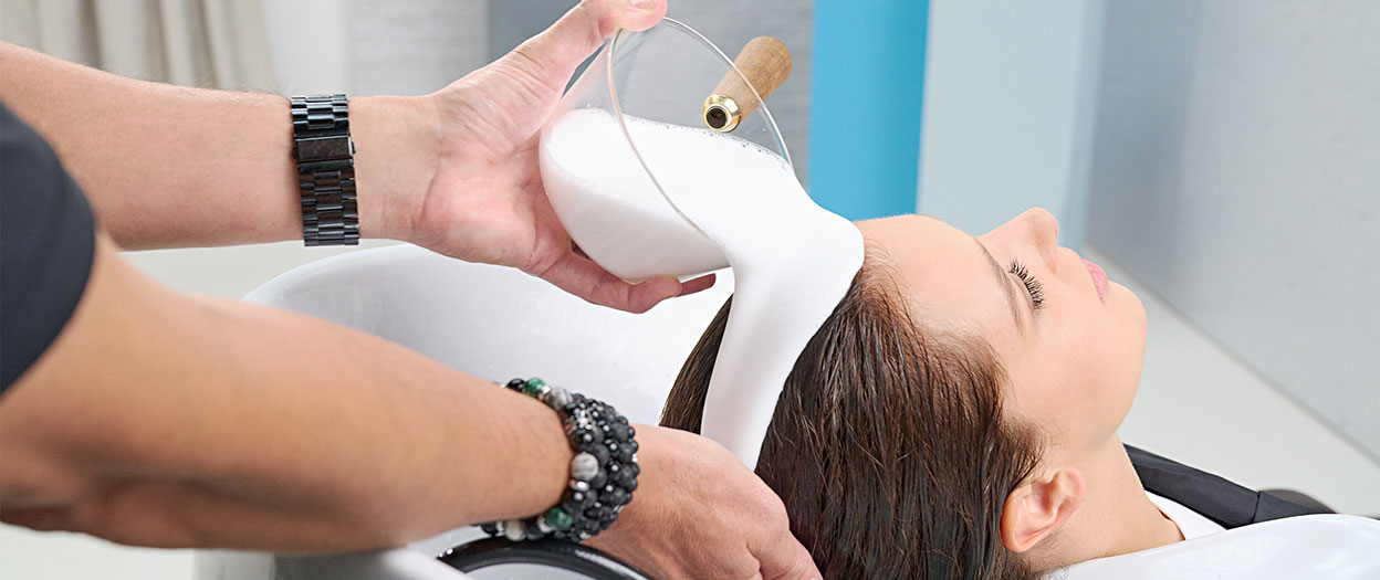 Das passende Shampoo wird als Schaumbad aufgetragen. Dafür das Shampoo mit Wasser in einer Schüssel wie Milchschaum aufschlagen, bis eine weiche, schaumige Konsistenz erreicht ist. Die Reibung beim Emulgieren wird durch das vorherige aufschäumen minimiert und das Verteilen erleichtert. Der Schaum ist sanfter zur Haarstruktur und unterstützt gleichzeitig die natürliche Textur.
