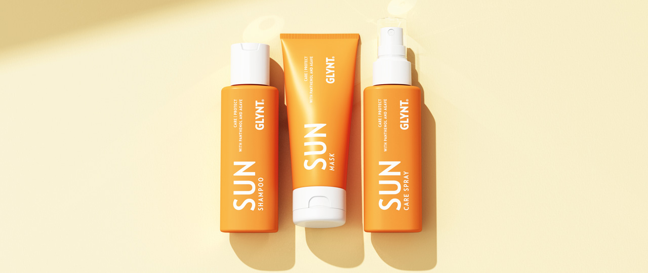Die Sun Serie von Glynt gleicht im Sommer entstehende Schäden und Feuchtigkeitsverluste wieder aus. Die Serie besteht aus Shampoo, Maske und Care Spray.