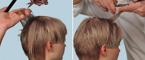 Step 3 | Abstufung im gesamten unteren Bereich ( Stilbereich ) in einer 90 Grad-Handhaltung. Hier wird der unterste Bereich geschnitten.