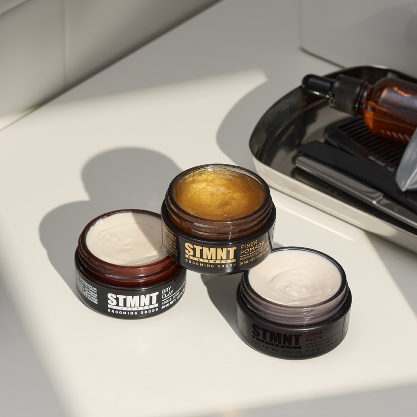 Gerade unterwegs und an wärmeren Orten benötigt man Stylingprodukte die das Haar nicht nur pflegen, sondern auch dafür sorgen, dass es hält! Dafür gibt's die STMNT Shine Paste, Fiber Pomade und Dry Clay in 30ml Größen.