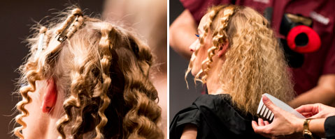 Mit heißem Glätteisen kurz andrücken, zum Auskühlen mit einer Klammer fixieren.