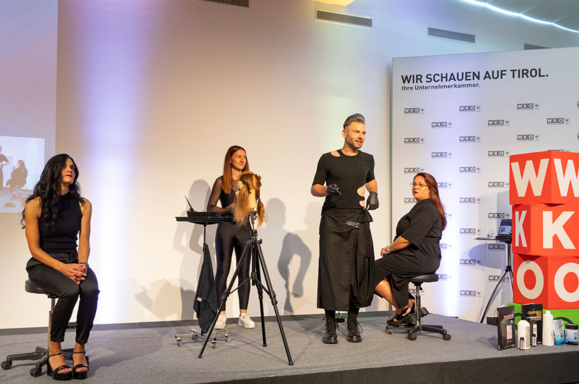 Die Landesinnung der Friseure Tirol, allen voran Innungsgeschäftsführerin Dr. Karolina Holaus und Landesinnungsmeister ►Clemens Happ, lud zum Trend-Workshop in die Wirtschaftskammer. On stage DER Branchenliebling schlechthin: Daniel Golz!