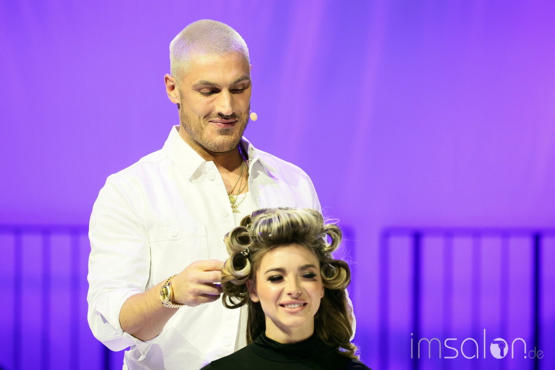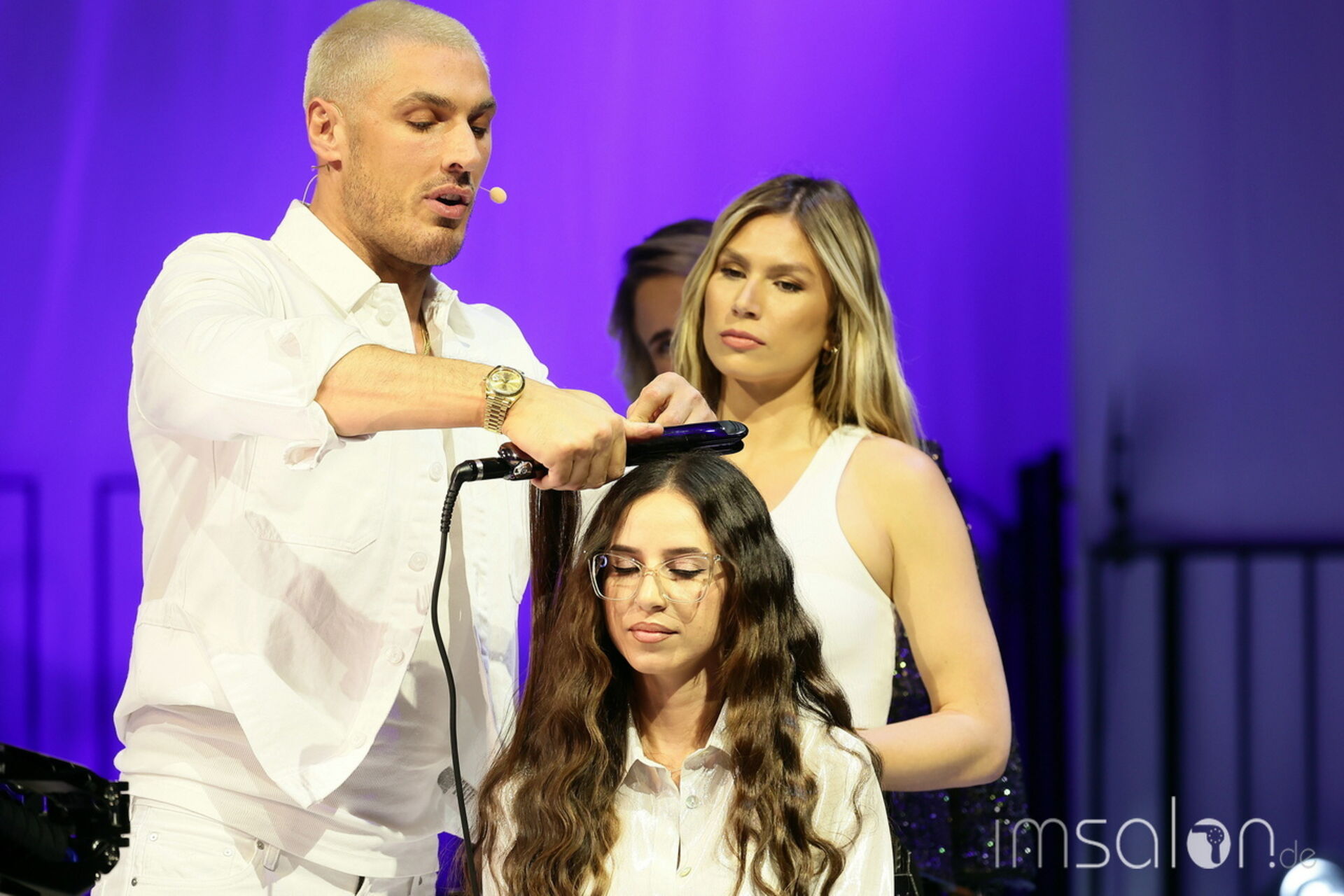 Der amerikanische Superstar frisiert VIP`s wie Kim Karadashian, Kate Perry oder eben Jennifer Lopez. Auf der großen Showbühne der TOP HAIR Messe kreiert er Super shiny expensiv Loopings Hair und verrät Tricks, mit denen er seinen prominenten Kundinnen Volumen ins Haar handwerkt: mit Tressen, Lockenstab und Glätteisen.