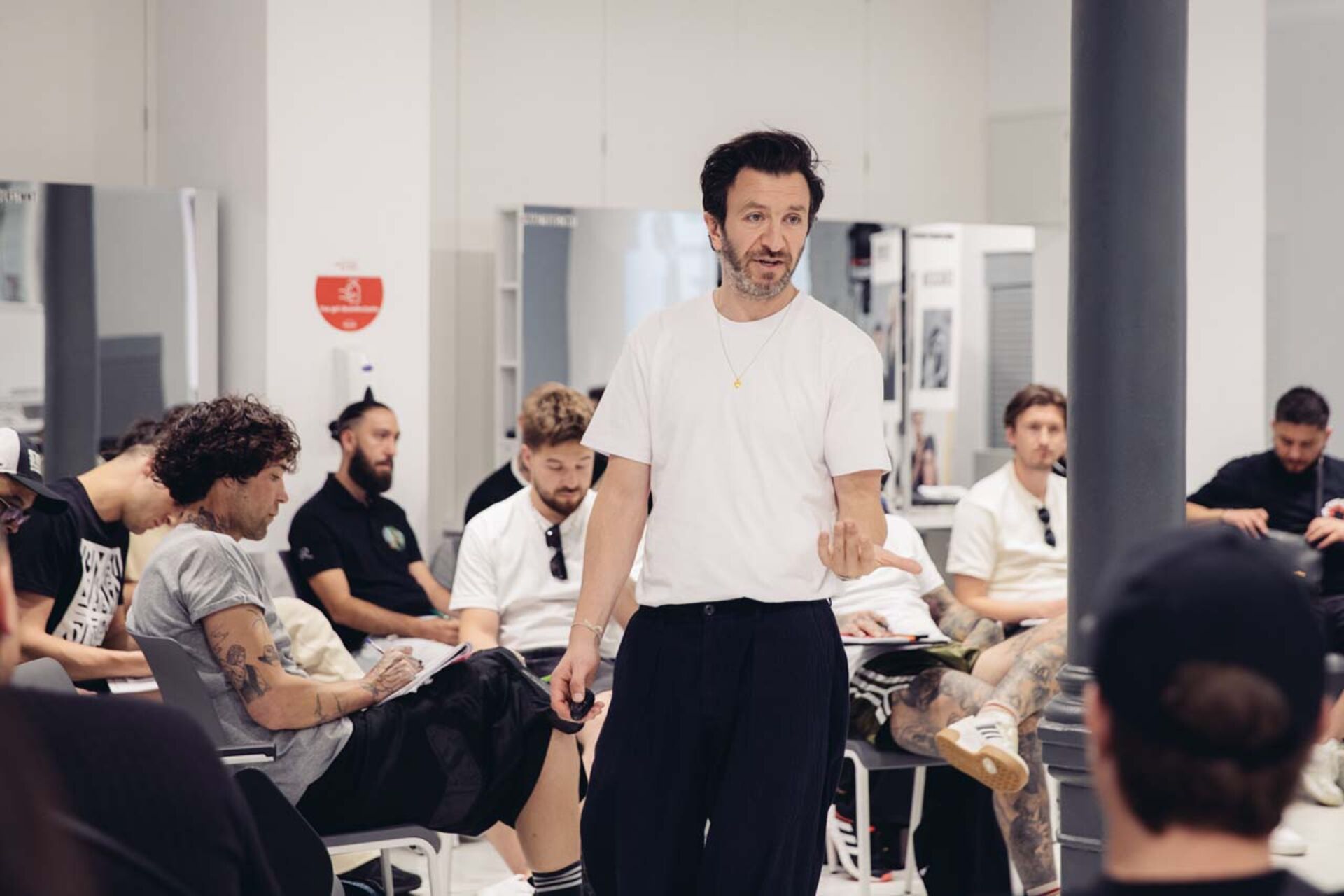 Baggy Hosen, Mützen, Caps, Tattoos, große Sonnenbrillen – das gab es beim STMNT Summit in Barcelona viel zu sehen. Was es sonst Spannendes zu entdecken gab? Im Austausch mit der STMNT Community fiel im Zusammenhang mit Trends häufig die Wörter „Mullet“ und "Male Grooming". Aber auch Mittelscheitel, Wolf Cut, Locken (egal ob Natur oder Dauerwelle) hörte man oft.