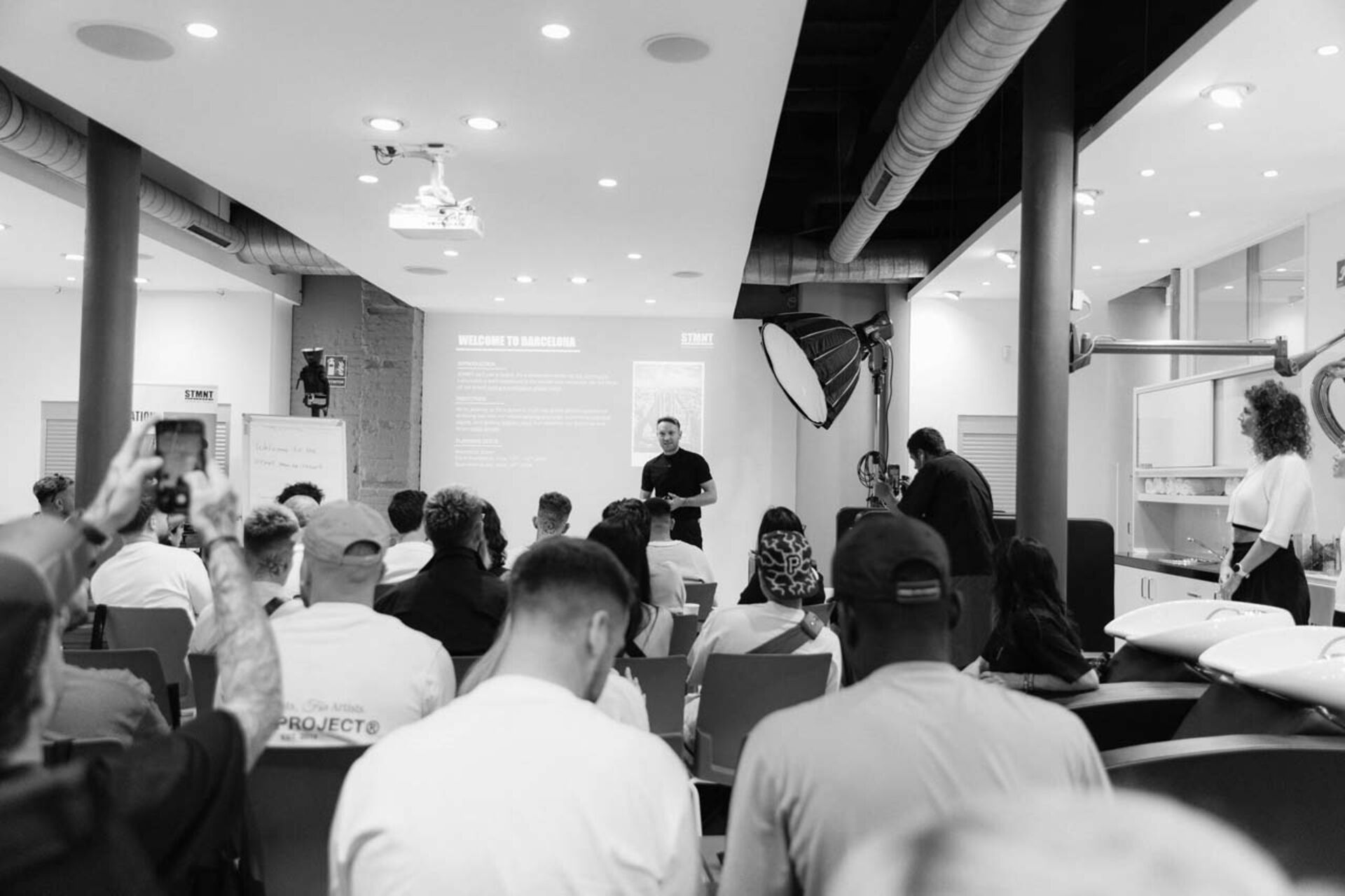 Nach dem International Barber Fest wurde ein exklusives Seminar für Friseure und Barber angeboten. Hierbei lagen technische Haarschneidekunst, sowie fachliche Terminologie im Fokus. Um den Teilnehmern einen Einblick in die inspirierende Welt der internationalen Akteure zu ermöglichen, würde gemeinsam mit den Seminarteilnehmern ein Live Photoshooting durchgeführt. Hierbei gaben die internationalen STMNT Experten Einblicke, wie sie hinter den Kulissen, Kleidung, Make Up und Hairstyling perfekt kombinieren, um den perfekten Editorial Look zu kreieren.