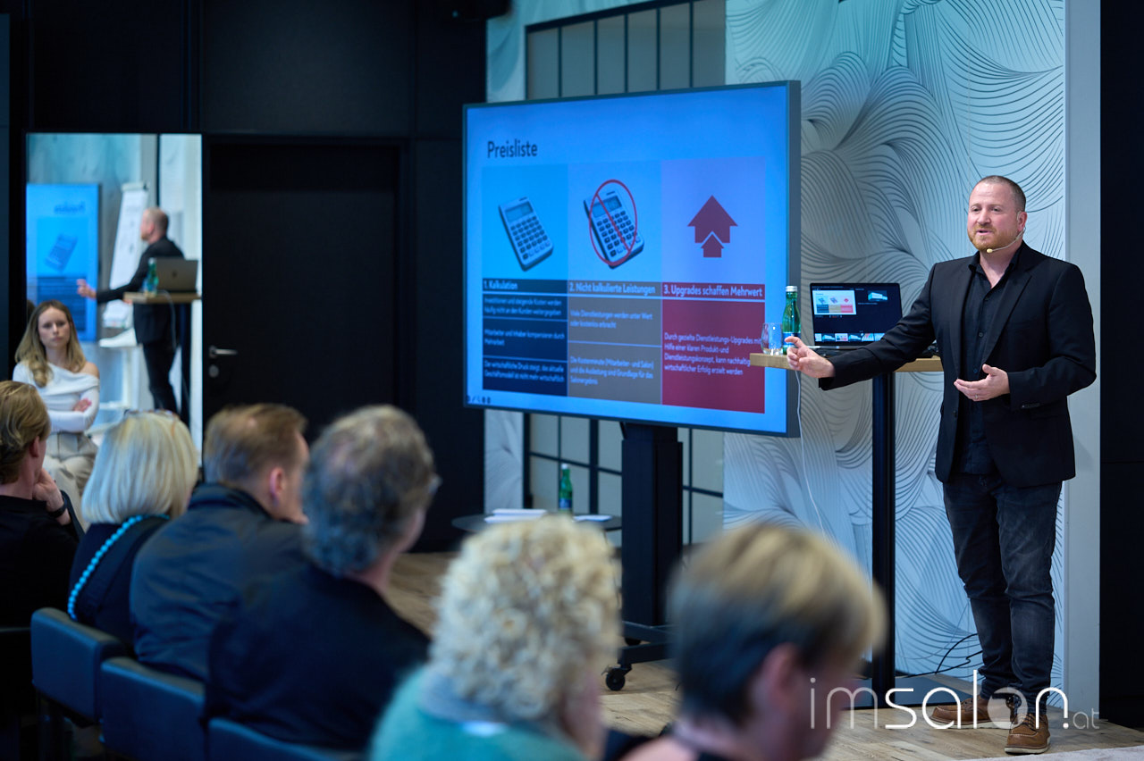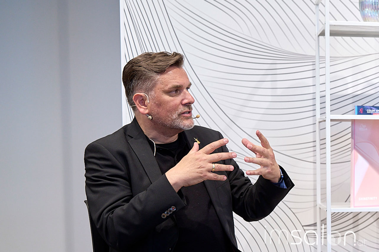 “Dieses Jahrzehnt ist nichts für Weicheier”, meint Lars Nicolaisen. Selbst erfolgreicher Friseurunternehmer in Hamburg weiß er, dass es jeden treffen kann, im derzeitigen Fahrwasser den Kurs zu verlieren. Als erster Speaker des Tages unterhält er mit geistreichem Storytelling und thematisiert Generation Z und Preiskalkulation.