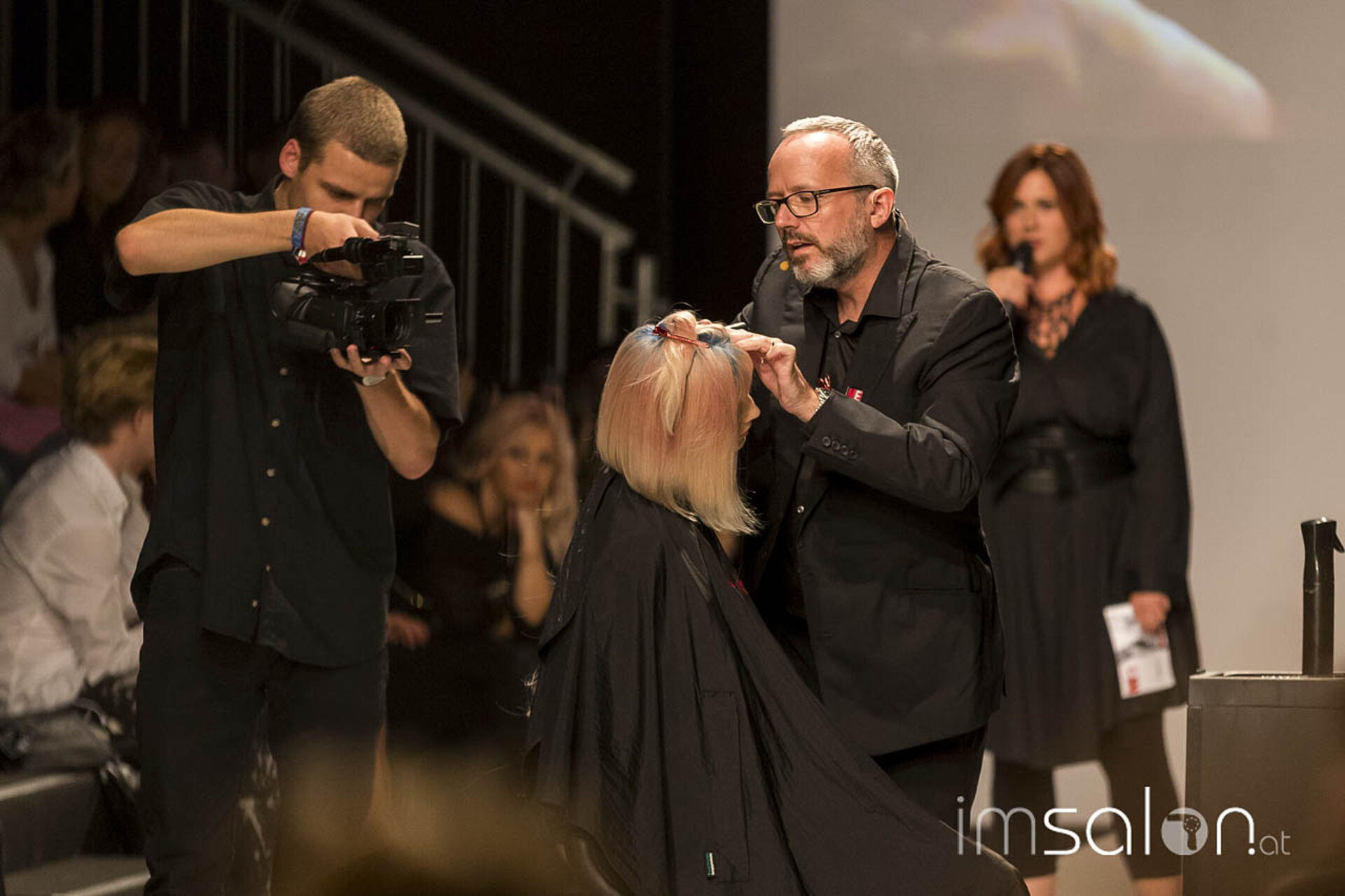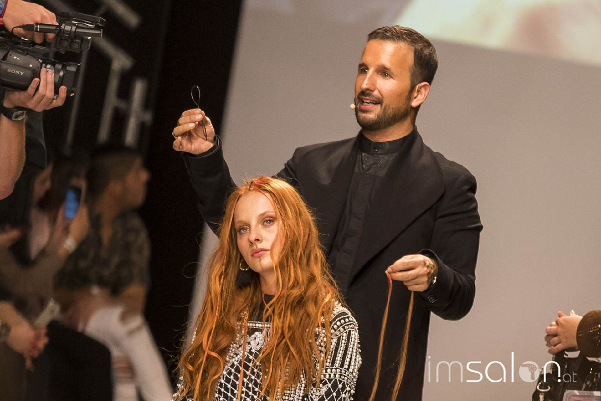 "Kundinnen wollen nach dem Friseurbesuch immer gerne anders aussehen, aber dennoch nichts verändern, ja nicht mehr als Spitzen abschneiden... Wer kennt das?", begann Marco Arena seine Show. Die Hände der anwesenden StylistInnen gingen auf der Stelle nach oben - im gesamten Fashion-Zelt.
