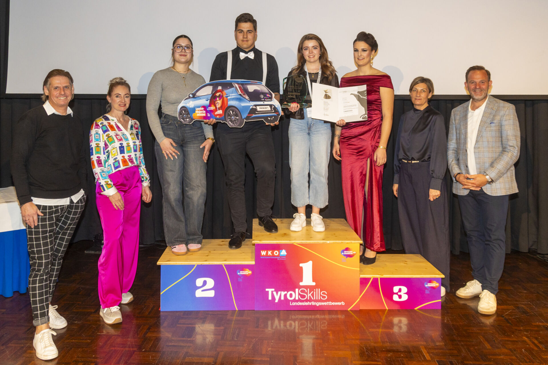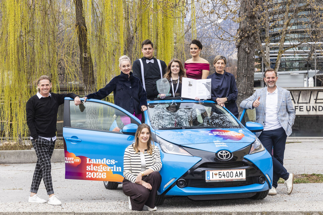 Auch heuer wartete auf "Tirols besten Friseurlehrling" ein besonderes Goodie: Die Landesinnung stellt einen Toyota mit Beschriftung der Innung der Friseure zur Verfügung, das Verena Gruber nun ein ganzes Jahr lang kostenlos fahren kann.