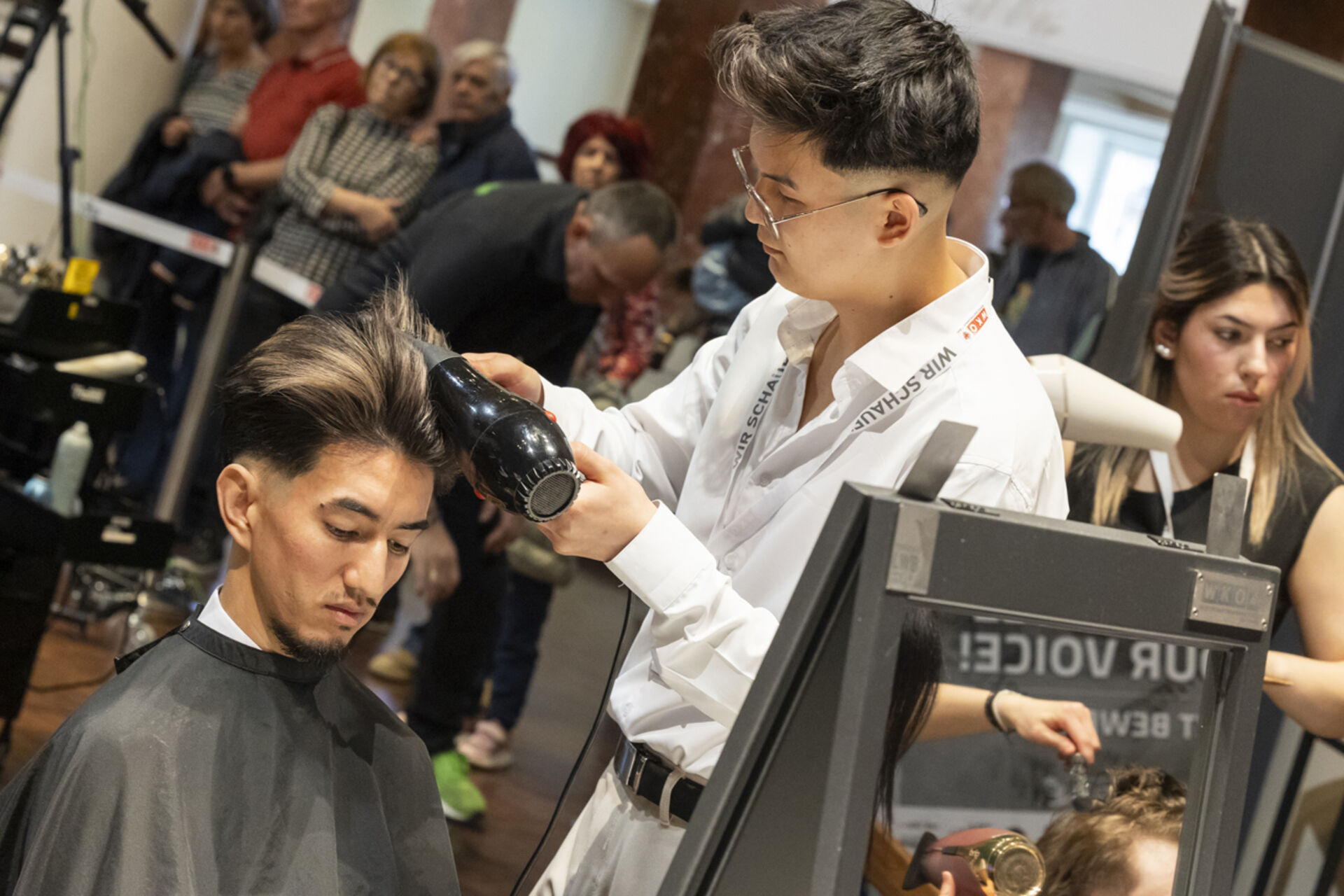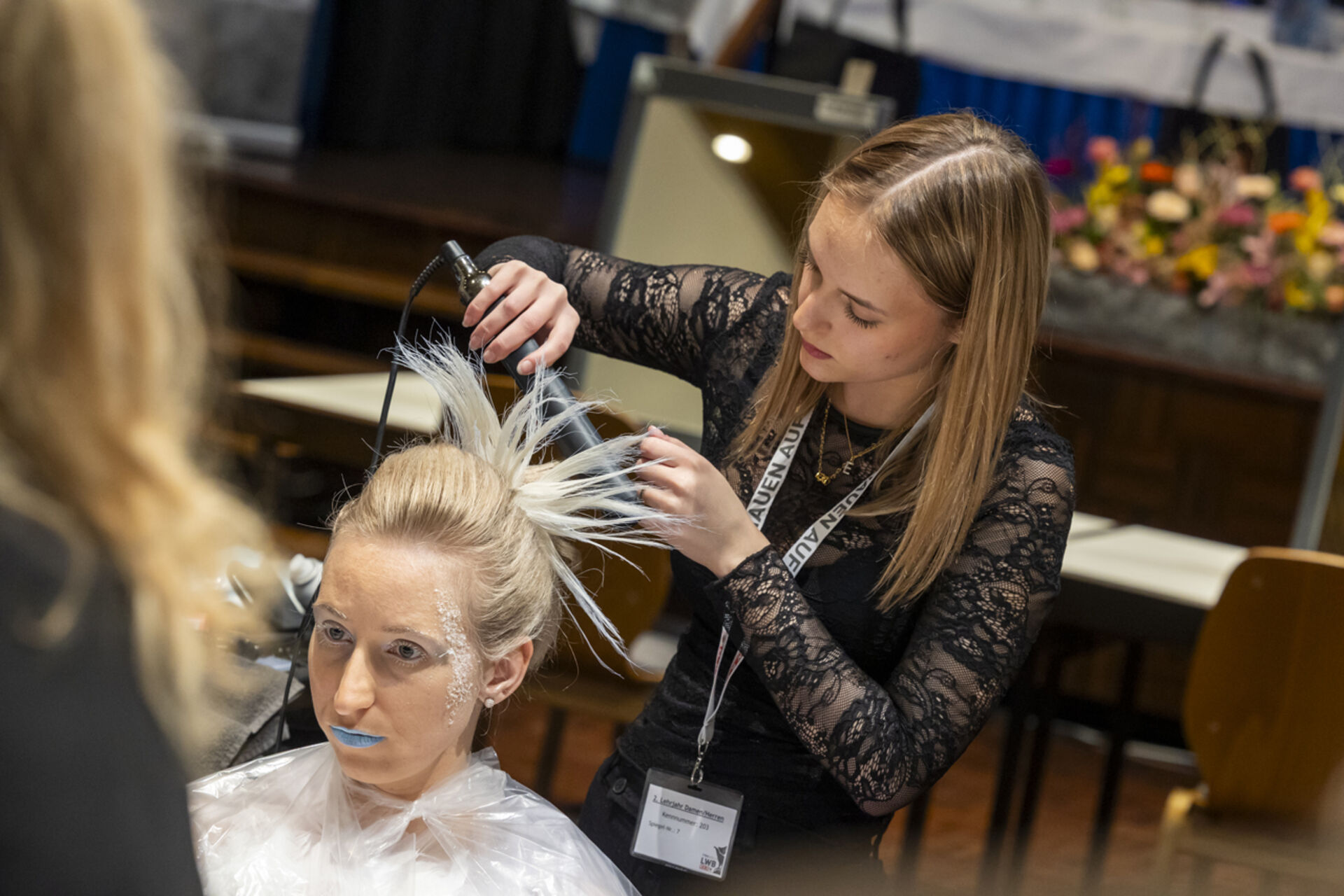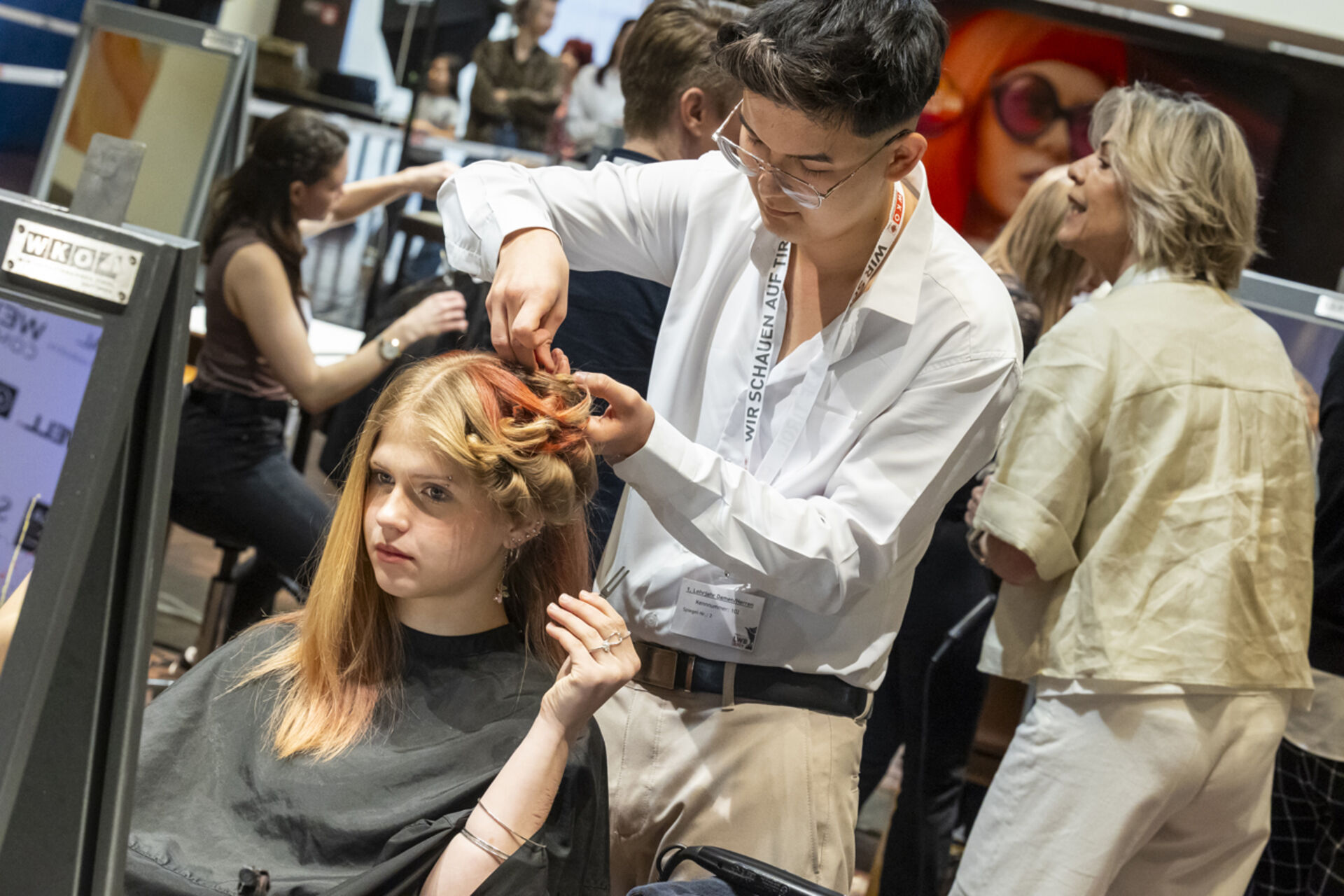 Innungsgeschäftsführerin Dr. Karolina Holaus und Landesinnungsmeister Clemens Happ und hießen die Nachwuchstalente im Kurhaus Hall willkommen, die in allen drei Lehrjahren konzentriert ihre Looks erstellten - und das unter den Augen der fachkundigen Jury (Vorsitz: Thomas Maresch) sowie der interessierten Zuschauerinnen und Zuschauer, Familienmitglieder, Freunde und Ausbilderinnen und Ausbildern.