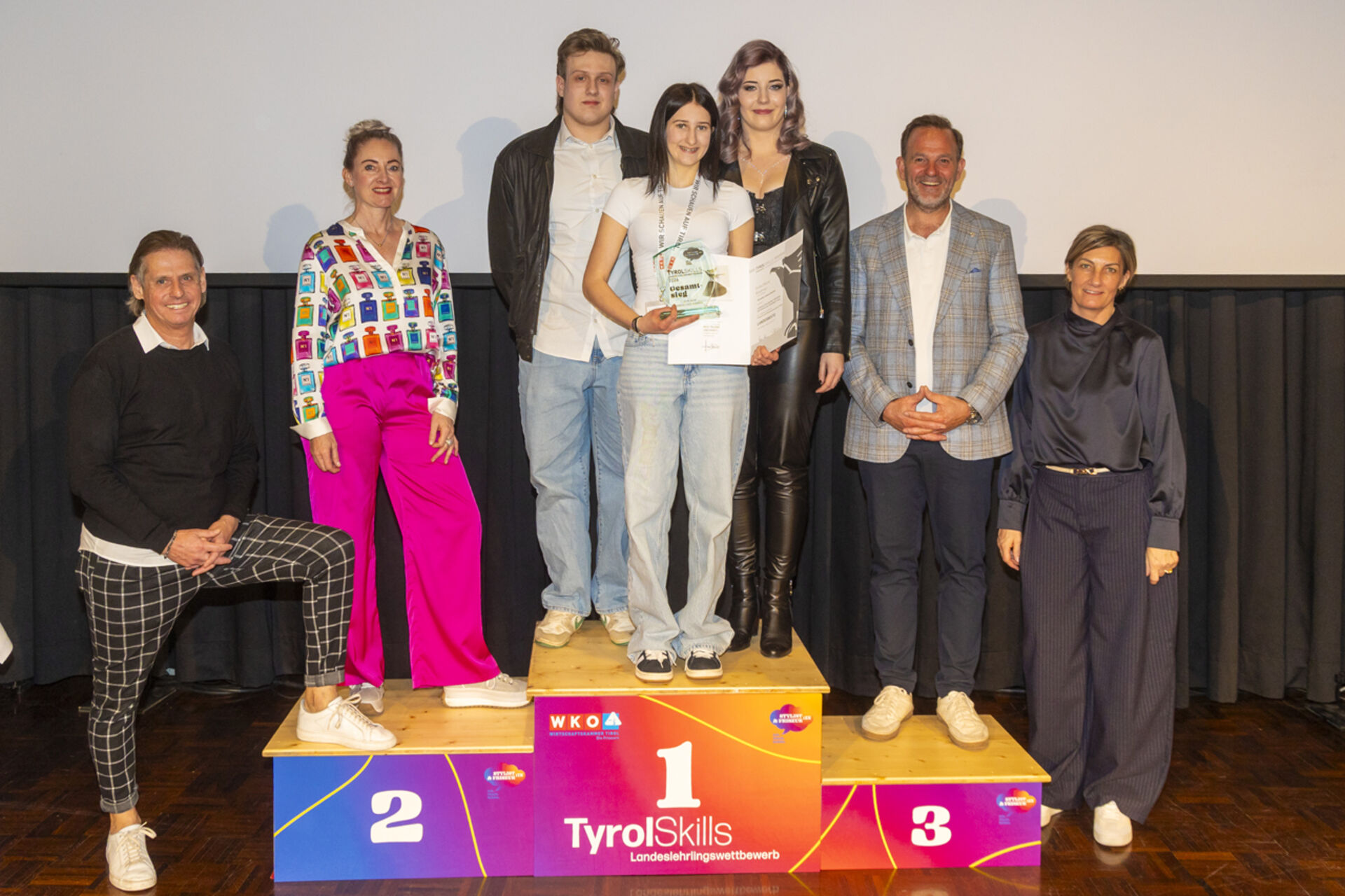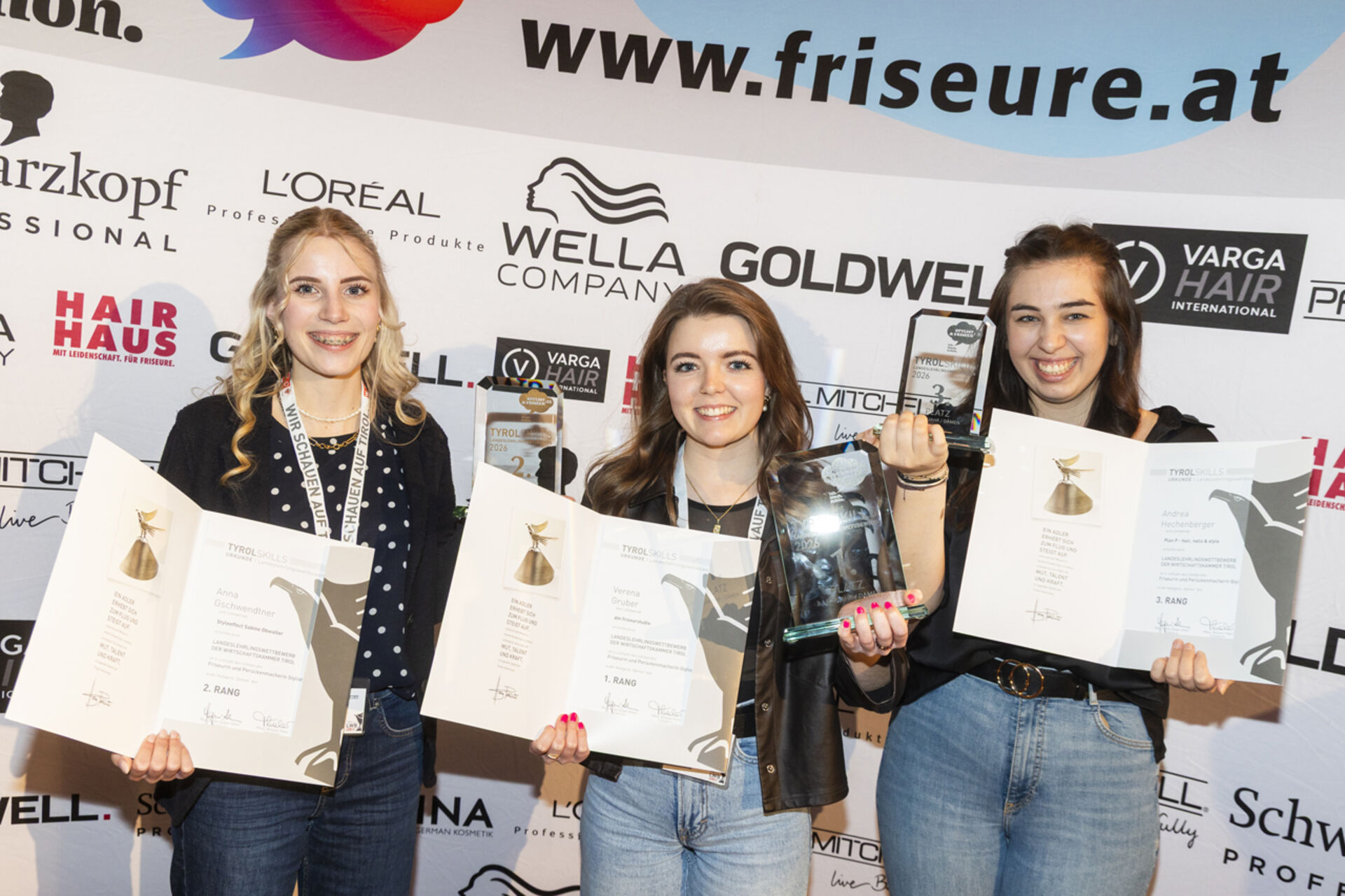 Den Landessieg im 3. Lehrjahr – und damit den Titel „Tirols bester Friseurlehrling“ – sicherte sich Verena Gruber aus Aschau im Zillertal. Die Nachwuchsstylistin absolviert ihre Lehre bei dm friseurstudio. Platz zwei ging an Andrea Hechenberger aus Jochberg, Platz drei an Anna Gschwendtner aus Going.