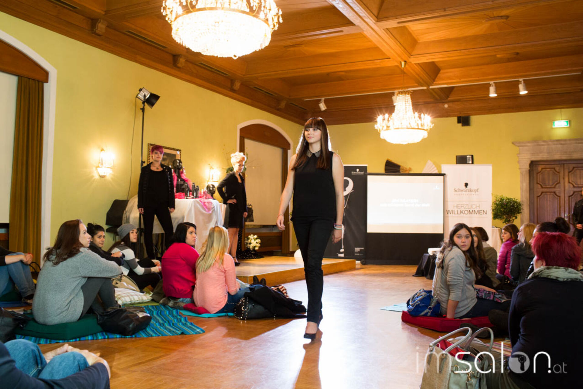 1. Raphaela Kirschnick (Geschäftsführerin friseurjobagent.at | imSalon.at) nahm mit den Lehrlingen den Begriff Karriere auseinander und zeigte anhand vieler erfolgreicher österreichischer Friseur-Karrieren, welche zahlreichen Möglichkeiten die jungen Leute haben.