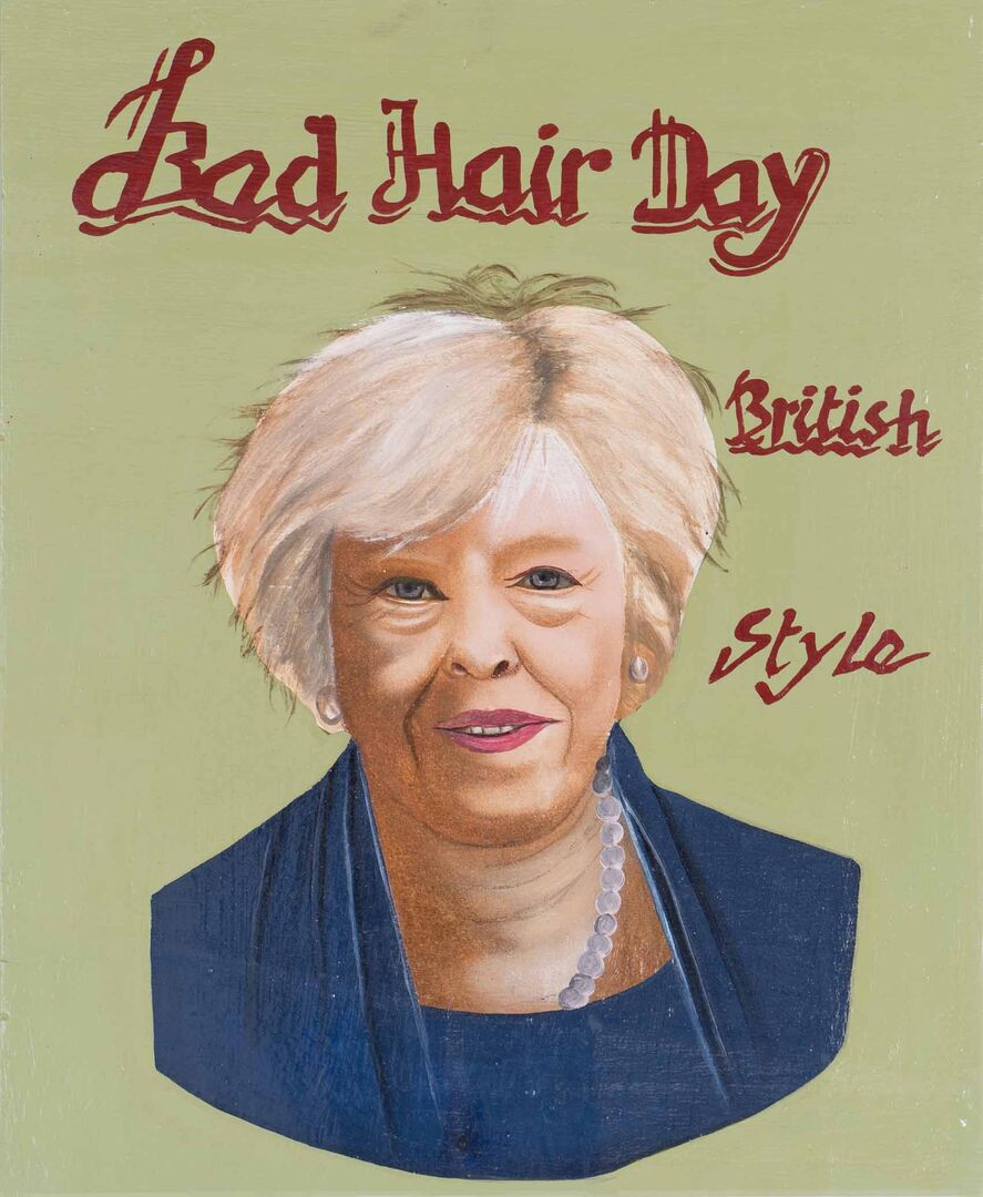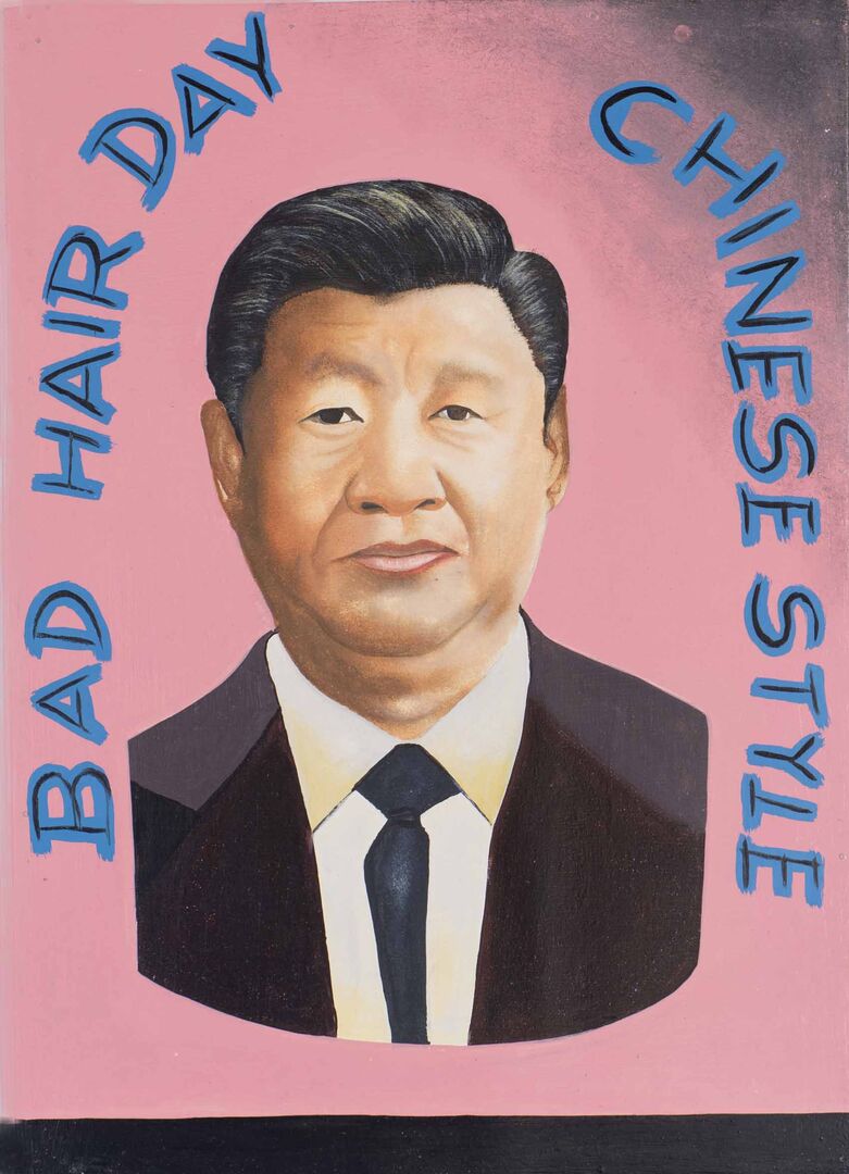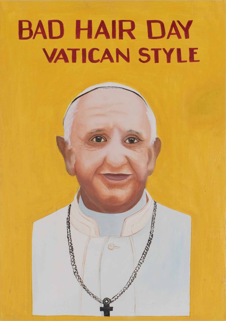 Die Inspiration zu seiner "Bad Hair Day" Reihe fand er in Benin, wo die Werbeschilder von Beautysalons traditionell mit der Hand gemalt sind: