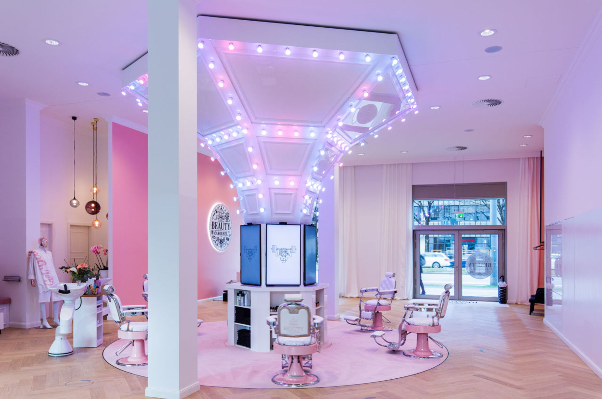 Mit dem Slogan "Begeben Sie sich auf eine 60-minütige Fahrt und steigen sie von Kopf bis Fuß perfekt gestylt aus - das Beauty Carousel im Schwabinger Tor in München macht Beauty-Wunder wahr!" deutet darauf hin, dass man sich schon beim Betreten des Beauty Carousels in einer anderen Welt wiederfindet.