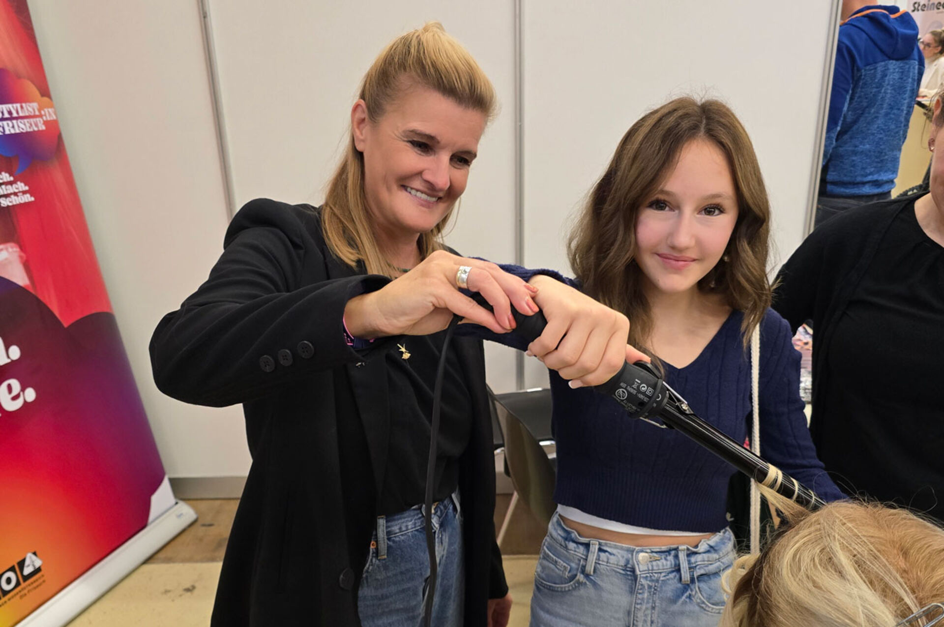 Unter dem Motto „Ich.Mach.Schön.“ nahm die Landesinnung der Friseure Niederösterreich diese Chance wahr und zeigte vom von 3. - 5. Oktober 2024 auf der Messe Schule & Beruf in Wieselburg Präsenz. Über 7.500, überwiegend junge Menschen, besuchten die Messe, an der die Landesinnung mit einem eigenen Informationsstand vertreten war. Tatkräftige Unterstützung gab es hier vonseiten der Landesberufsschule St. Pölten, deren Nachwuchsstylistinnen interessierten Jugendlichen an Technikköpfen zeigten, was der Beruf der Friseurin und des Friseurs alles kann und in persönlichen Gesprächen erklärten, was ihnen selbst besonders gut an ihrer Berufswahl gefällt.