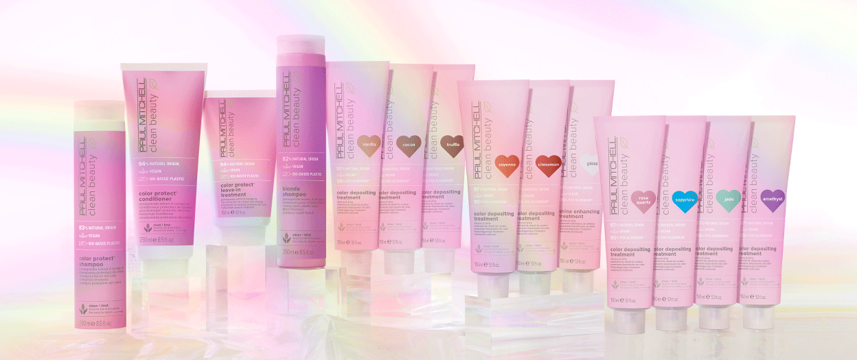 Das umfassende Sortiment der Clean Beauty Color Protect-Serie deckt alle Schritte der Haarroutine ab: Reinigung, Pflege und Schutz. Shampoo, Conditioner, Leave-In Treatment und ein Blonde-Shampoo helfen, die Brillanz jeder Haarfarbe zu erhalten. Zusätzlich gibt es neun farbeinlagernde Masken und einen transparenten Gloss, die die Coloration zwischen den Salonbesuchen auffrischen und intensiven Glanz schenken.
