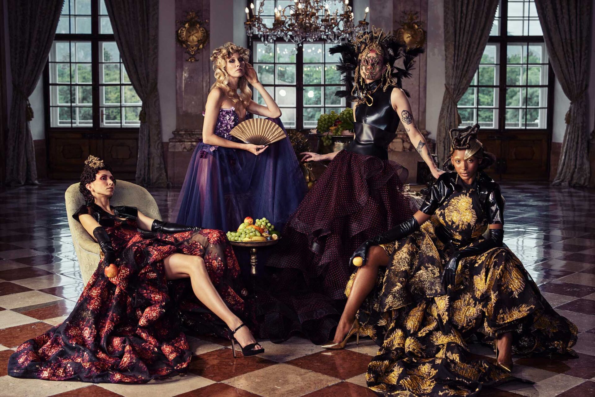 Den Film hat Mario Krankl zusammen mit dem aufstrebenden Filmemacher Daniel Ronacher von Solidshot umgesetzt. Nun folgt der erste Teil der zweiteiligen Fotokollektion aus „Garland & Tinsel“ mit einer Märchenkulisse, der schon Karl Lagerfeld und Chanel nicht widerstehen konnten: das Schloss Leopoldkron in Salzburg. Mario Krankl ist bekannt für seine opulenten Inszenierungen, die ausgehend von den Haaren ein faszinierendes Gesamtbild ergeben. Wer könnte da den „Highfashion Hausherrn“ besser verkörpern als der großartige Make-up-Artist von Björk und selbst Instagram Star @Isshehungry? Die Haute Couture Kleider stammen vom österreichischen Designer-Shootingstar Eva Poleschinksi, deren opulente Red Carpet Roben perfekt in die traumhafte Kulisse passten. Für das Make-up zeigte sich Eva Hauswirth verantwortlich. Mit Friedrich Hauswirth als Director of Photography hatte Krankl ein hochkarätiges Team an seiner Seite.