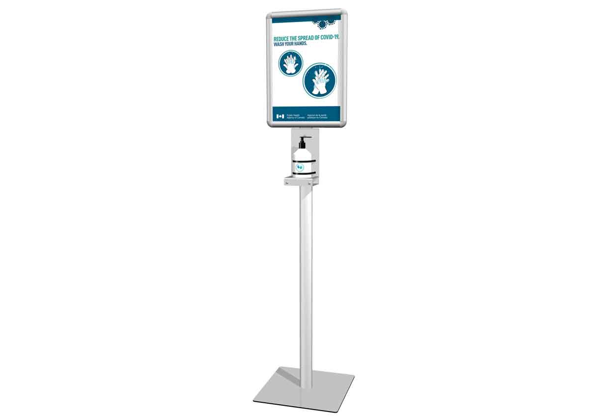Einfach "Desinfektionsmittelspender" googlen, um eine Vielzahl von Angeboten, in der Nähe zu finden.