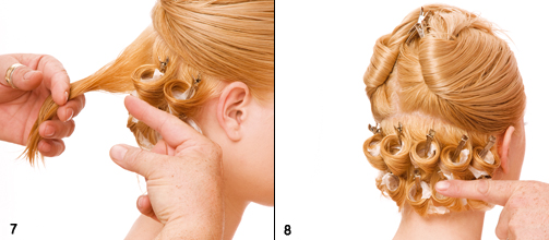 Step 3|4 Im Nacken beginnend einzelne Strähnen papilottieren.