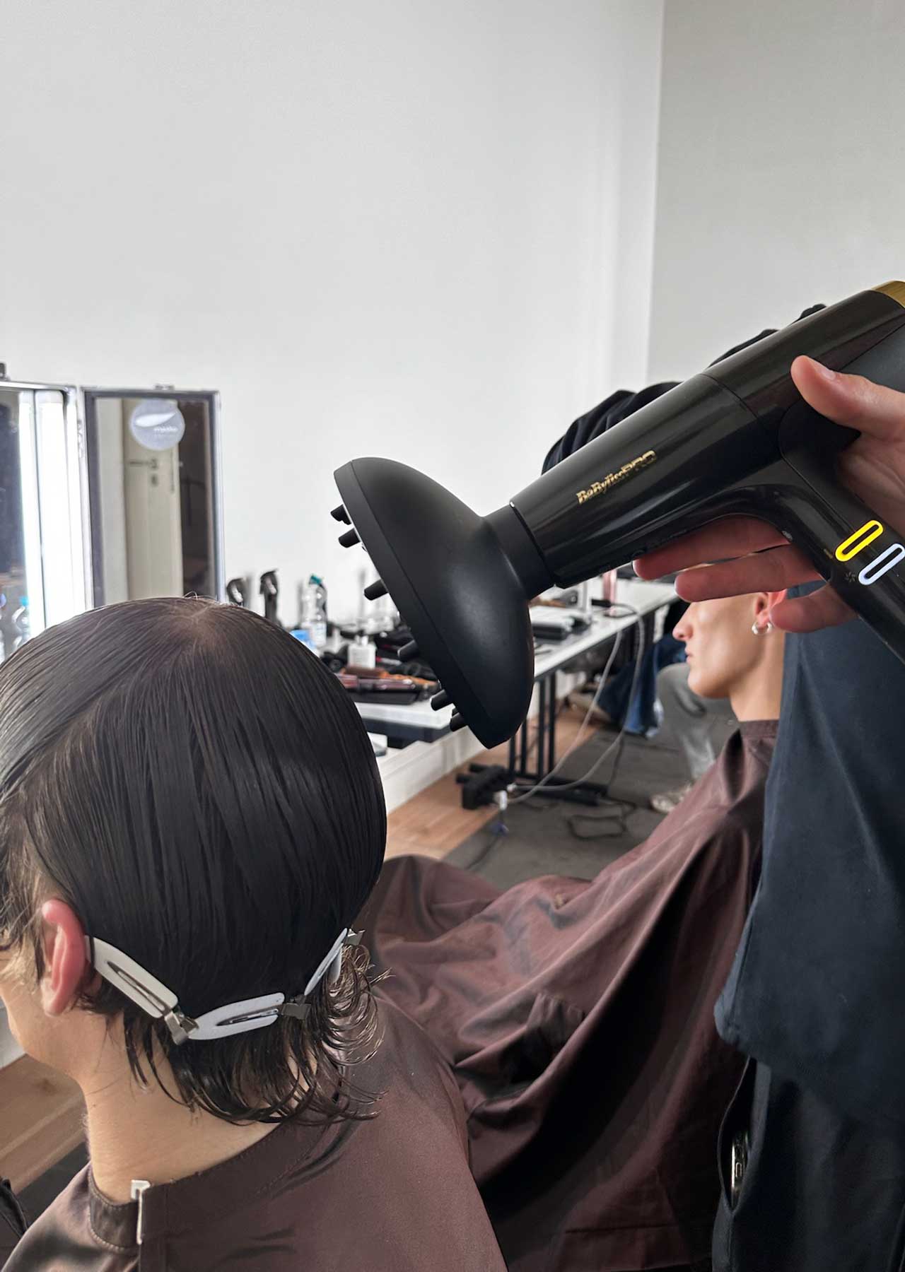 Wenn die Lichter der Berliner Fashion Week angehen, entfalten sich hinter den Kulissen Kreativität und handwerkliche Meisterschaft. Backstage bei der Fashion Show von Alan Balletshofer spielen die Hair-Stylistinnen und Stylisten an der Seite von Alessandro Albanese (Head of Styling) eine zentrale Rolle, der in Sachen Tools auf BabylissPRO setzt, "deren innovativen Werkzeuge es uns ermöglichen, die einzigartige Designästhetik von Balletshofer durch einzigartige Hairstyles zum Ausdruck zu bringen.", so Alessandro.