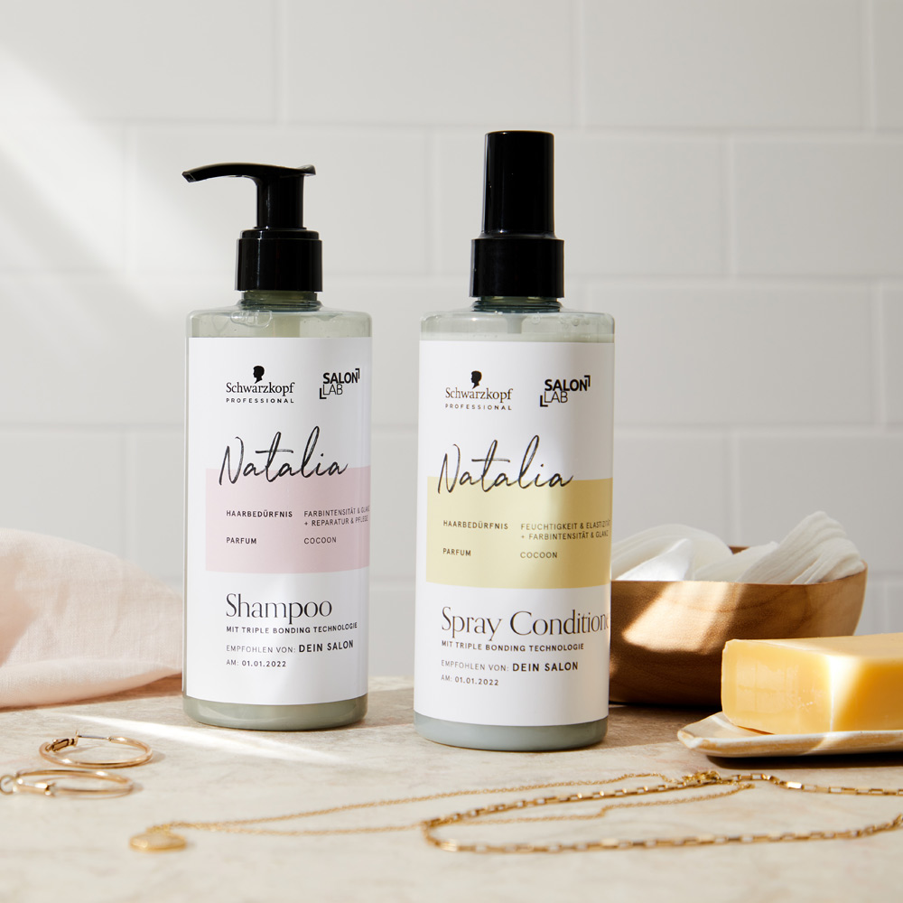 Nach einer Haaranalyse im Salon können Kund*innen die Salon Lab&Me-Produkte von Schwarzkopf-Professional einfach nachhause bestellen. Personalisiertes Shampoo, Conditioner und Maske versorgen das Haar mit genau den Wirkstoffen, die es benötigt.