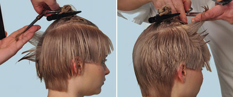 Step 4-7 | Der zweite Abstufungsbereich wird genau mit der Technik des unteren Bereiches geschnitten.