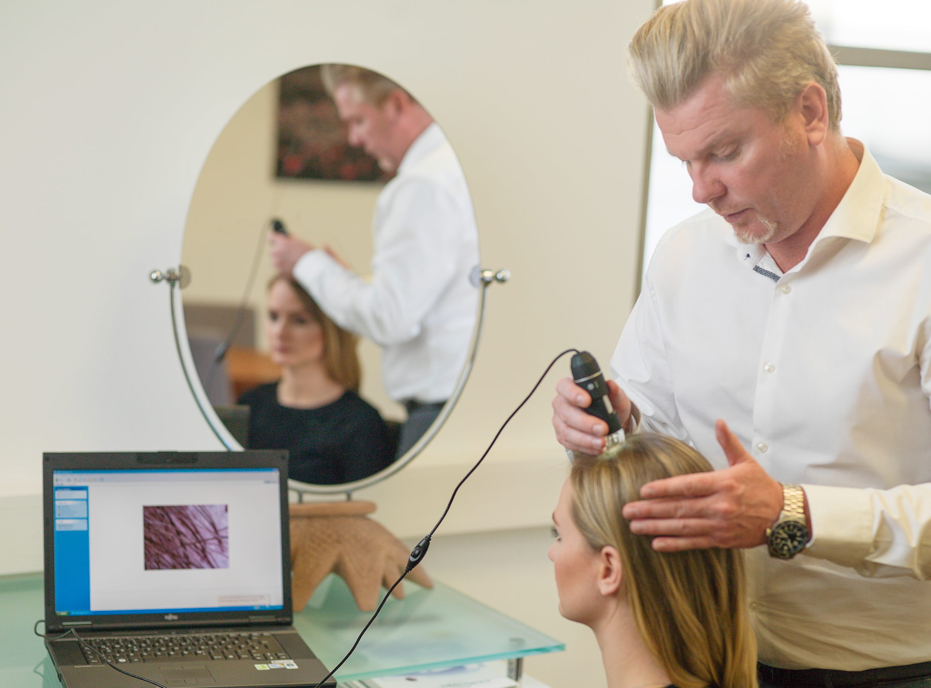 Kopfhautprobleme sind eine immer häufiger auftretende Reaktion von Menschen auf Umwelt, Corona oder als Folge unterschiedlichster Krankheiten. Für das Friseurhandwerk liegt hier viel Potentzial. Peter Fuchs lebt das Thema, arbeitet eng mit Mediziner*innen im eigenen Haarinstitut zusammen, hat verschiedene Therapien für gesunde Kopfhaut entwickelt und ergänzt damit das florierende Zweithaargeschäft.