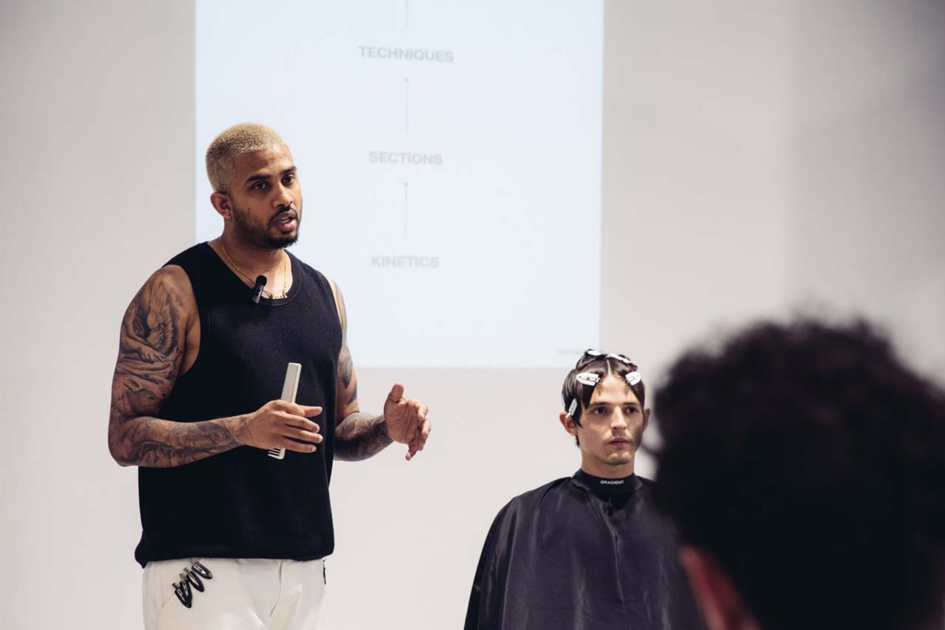 Nach dem International Barber Fest wurde ein exklusives Seminar für Friseure und Barber angeboten. Hierbei lagen technische Haarschneidekunst, sowie fachliche Terminologie im Fokus. Um den Teilnehmern einen Einblick in die inspirierende Welt der internationalen Akteure zu ermöglichen, würde gemeinsam mit den Seminarteilnehmern ein Live Photoshooting durchgeführt. Hierbei gaben die internationalen STMNT Experten Einblicke, wie sie hinter den Kulissen, Kleidung, Make Up und Hairstyling perfekt kombinieren, um den perfekten Editorial Look zu kreieren.