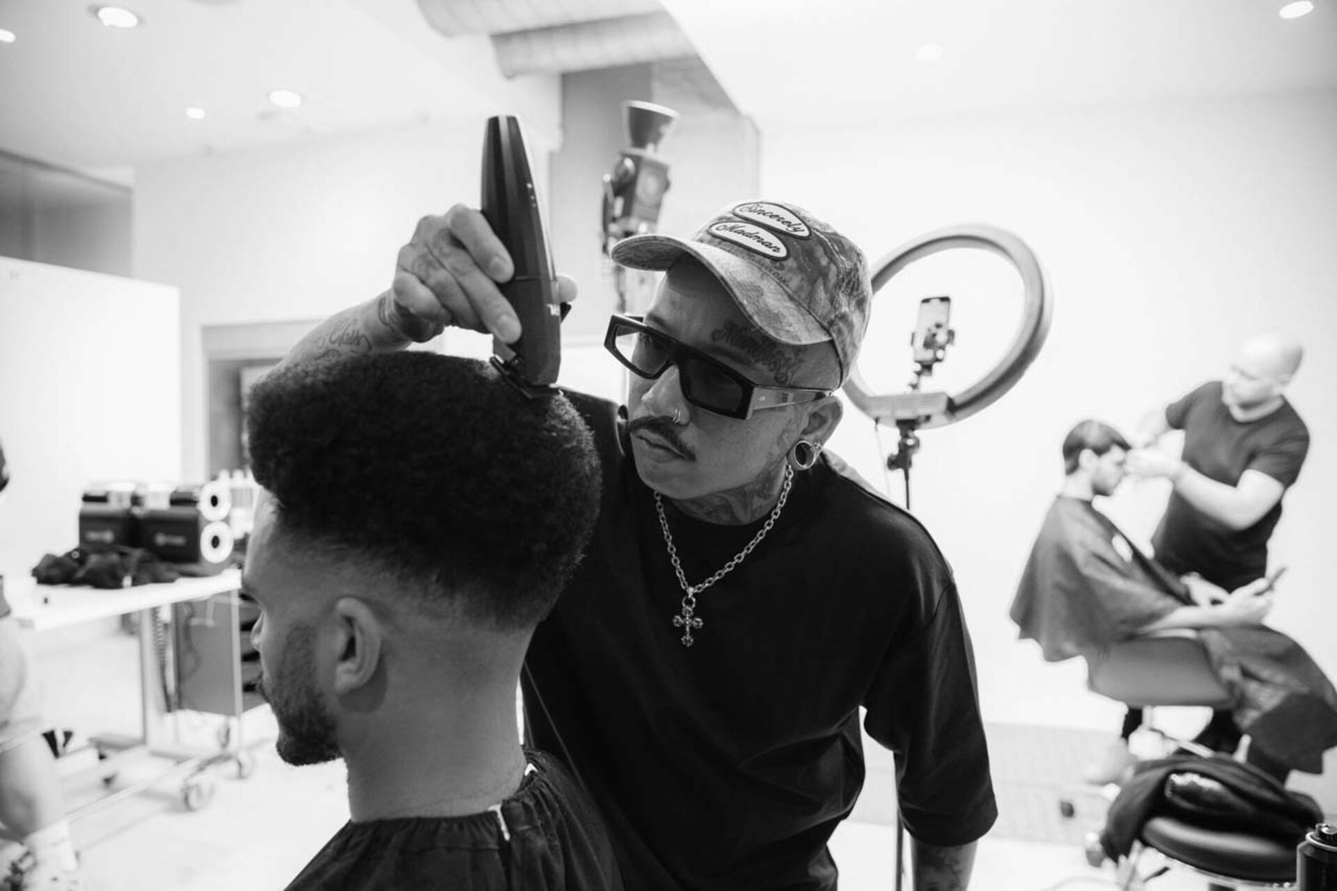 Baggy Hosen, Mützen, Caps, Tattoos, große Sonnenbrillen – das gab es beim STMNT Summit in Barcelona viel zu sehen. Was es sonst Spannendes zu entdecken gab? Im Austausch mit der STMNT Community fiel im Zusammenhang mit Trends häufig die Wörter „Mullet“ und "Male Grooming". Aber auch Mittelscheitel, Wolf Cut, Locken (egal ob Natur oder Dauerwelle) hörte man oft.
