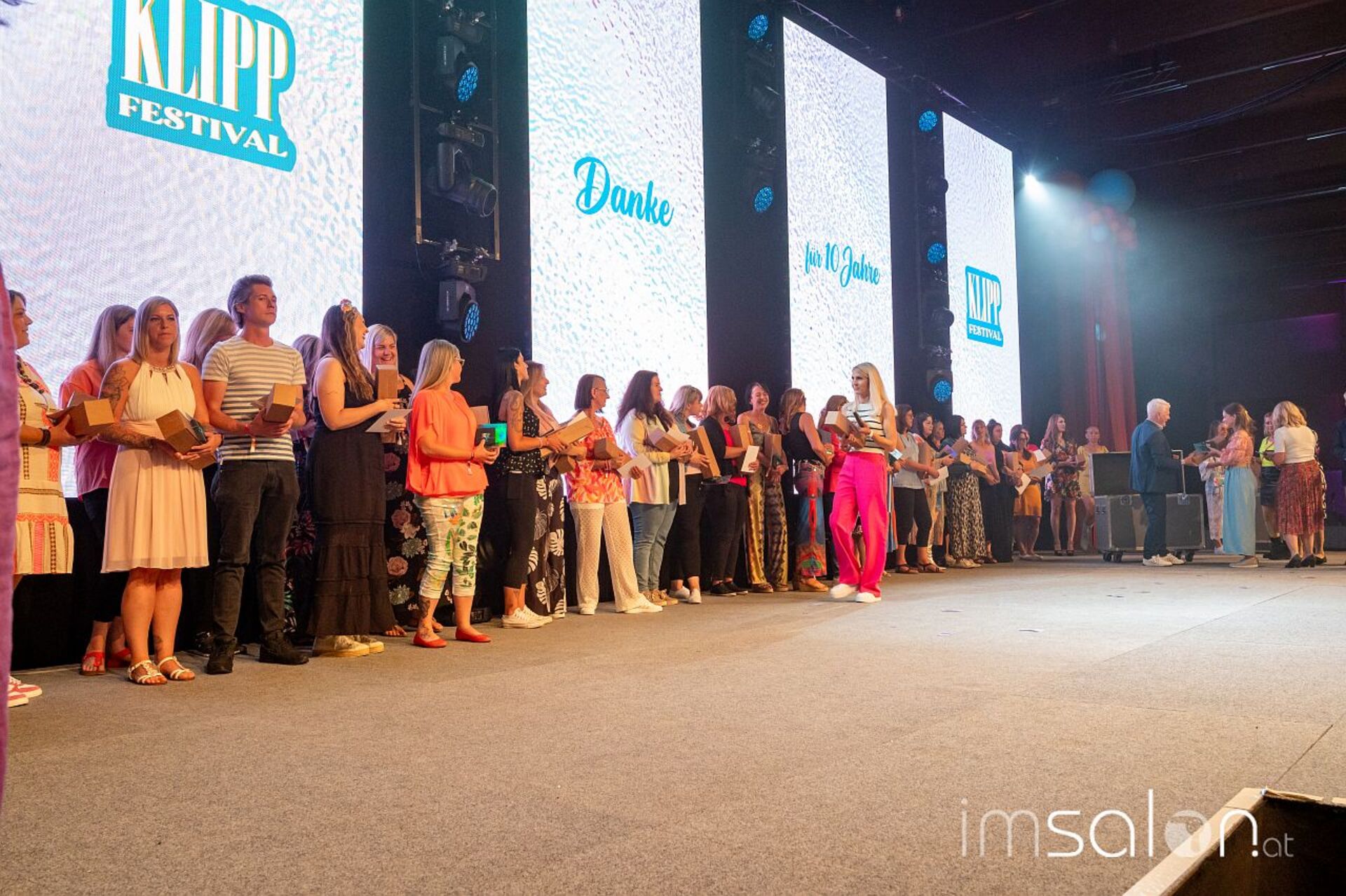 Und das war an diesem Sonntag gerade bei den Ehrungen der langjährigen Mitarbeiterinnen und Mitarbeiter zu spüren. An die 500 wurden namentlich genannt, auf die Bühne geholt und mit Präsent geehrt. Allen voran Pamela Mayr, die auf stolze 37 Jahre zurückblickt und bereits vor Eröffnung des ersten Klipp-Salons bei Ewald Lanzl tätig war. Gänsehautfeeling bei jedem Applaus, der durch die Halle tobte.