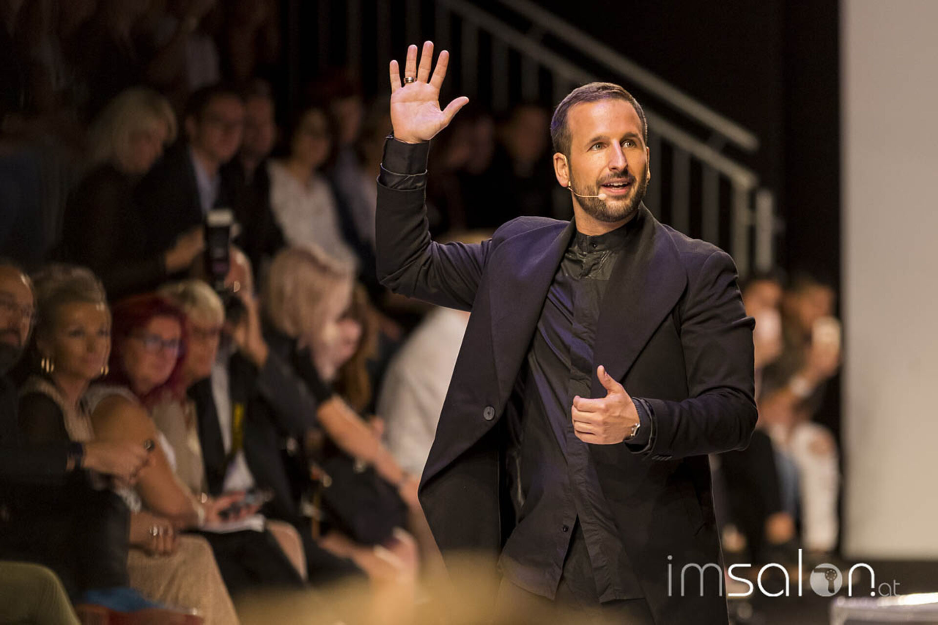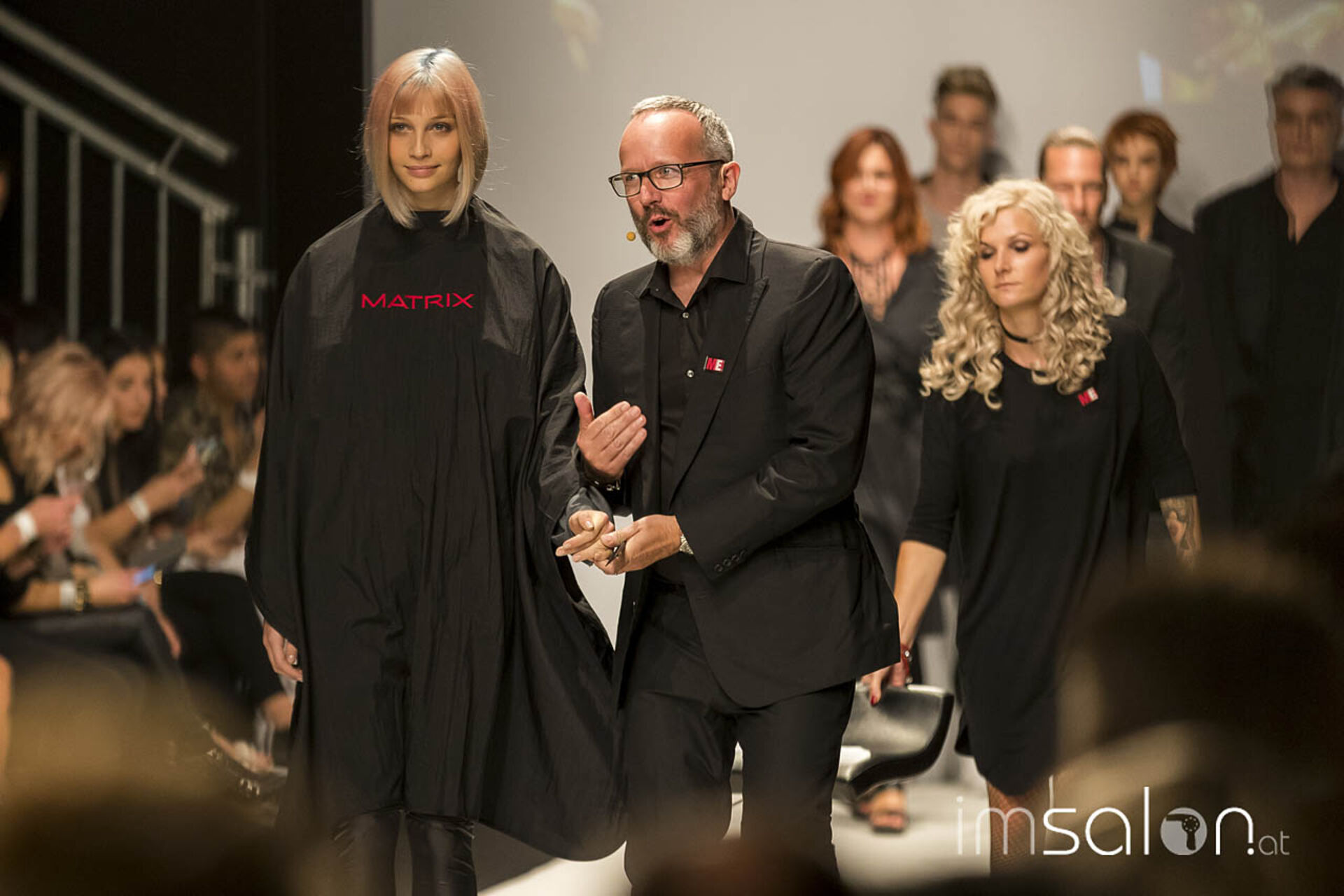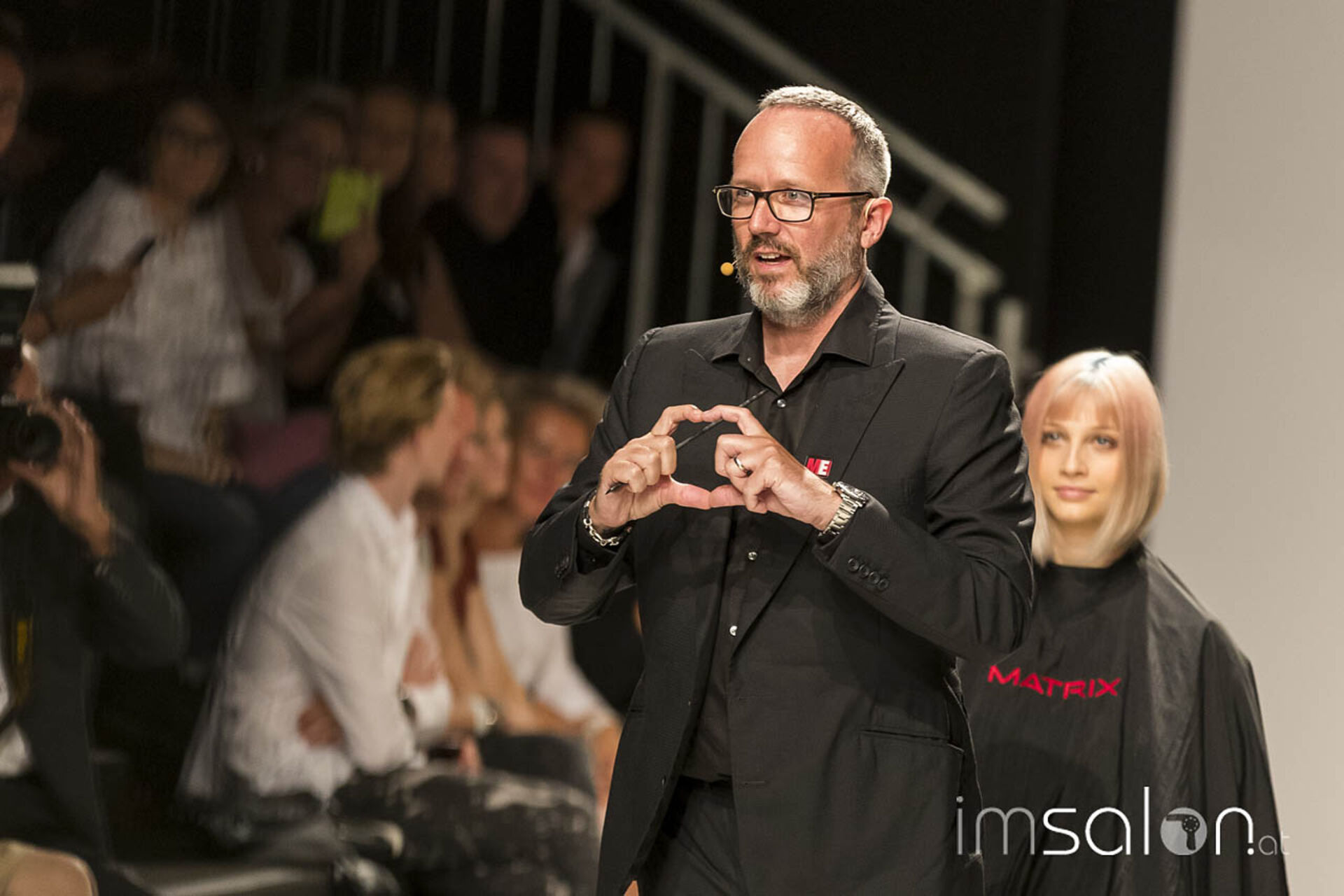 "Kundinnen wollen nach dem Friseurbesuch immer gerne anders aussehen, aber dennoch nichts verändern, ja nicht mehr als Spitzen abschneiden... Wer kennt das?", begann Marco Arena seine Show. Die Hände der anwesenden StylistInnen gingen auf der Stelle nach oben - im gesamten Fashion-Zelt.