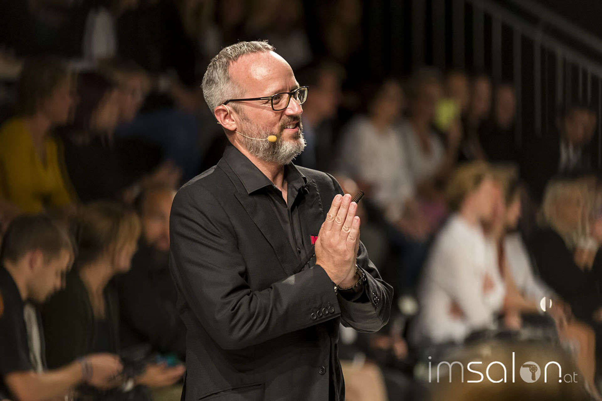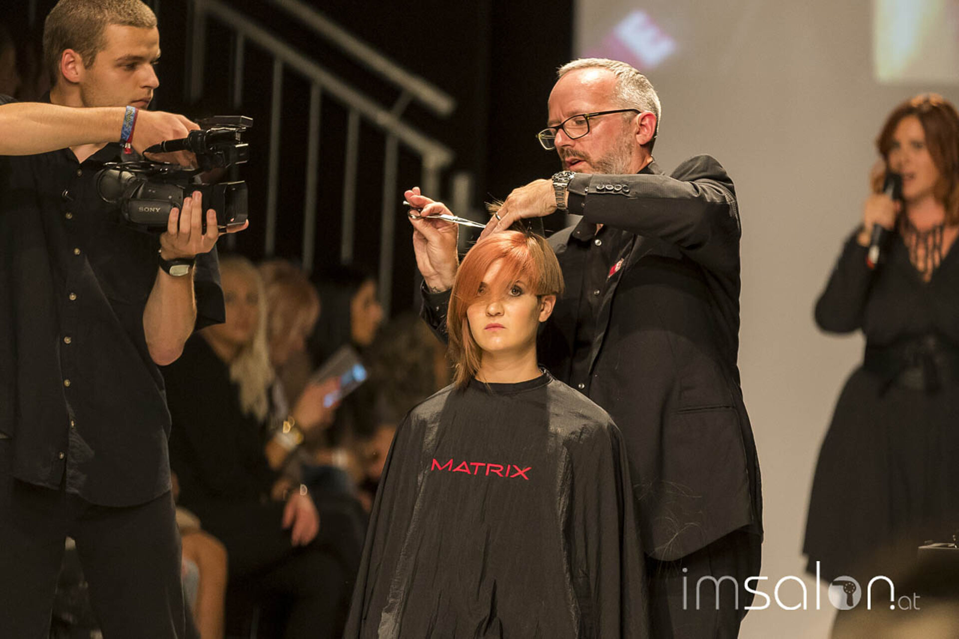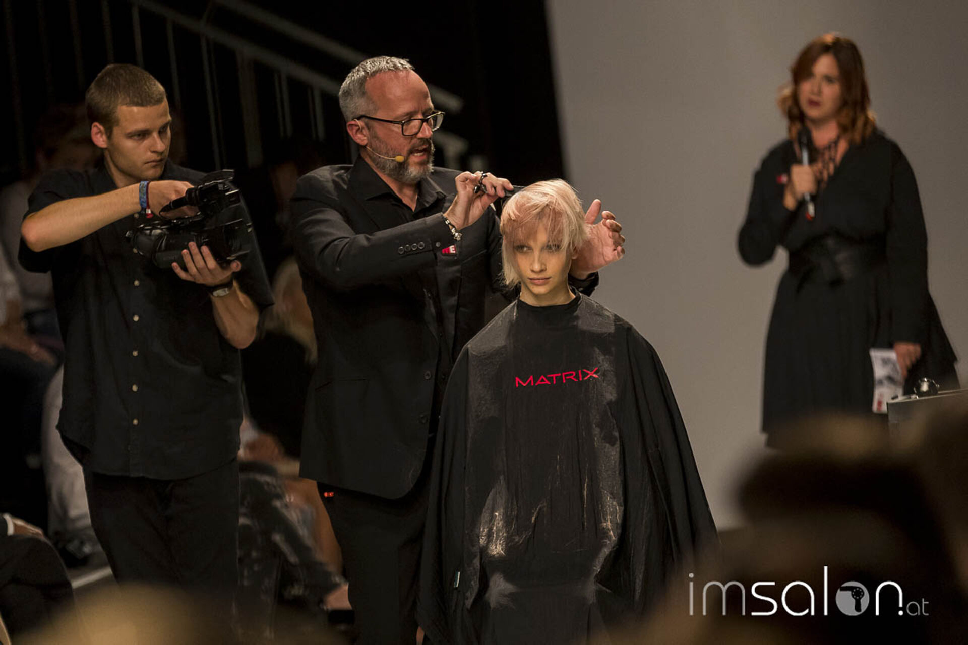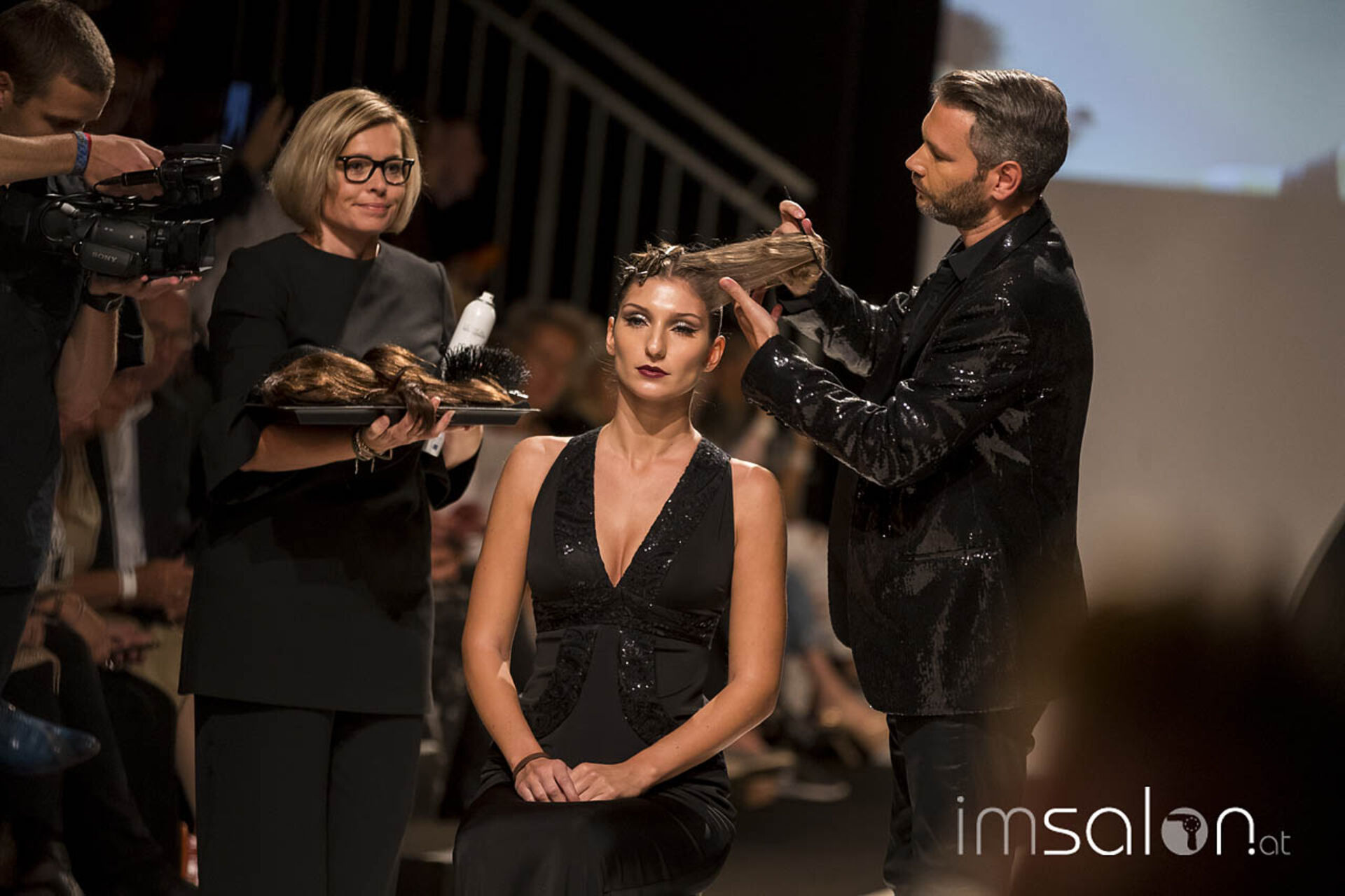 "Kundinnen wollen nach dem Friseurbesuch immer gerne anders aussehen, aber dennoch nichts verändern, ja nicht mehr als Spitzen abschneiden... Wer kennt das?", begann Marco Arena seine Show. Die Hände der anwesenden StylistInnen gingen auf der Stelle nach oben - im gesamten Fashion-Zelt.