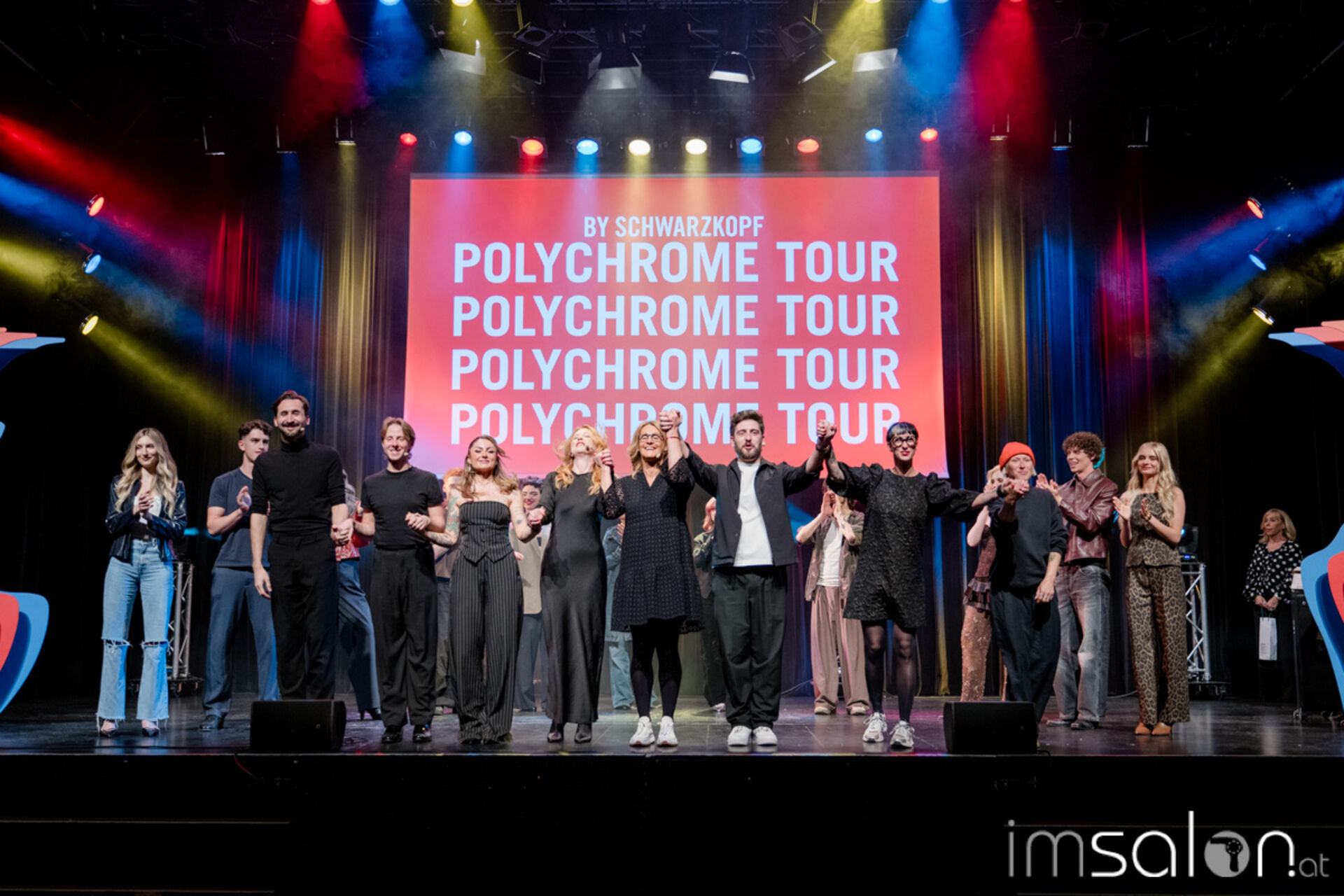 Das Farbteam von Schwarzkopf Professional mit Oliver Kössler und Heidemarie Koschuch demonstriert das Polychrome Service, das durch multitonale Farbplatzierungen neue Standards in der Personalisierung setzt. Gearbeitet wird mit mehreren Farbtönen, die sich harmonisch ergänzen oder bewusst kontrastieren (z. B. warm/kühl oder hell/dunkel) und nahtlos ineinander übergehen. Die Nuancen sitzen oberhalb der Hutlinie, im Deckhaar, rund ums Gesicht oder entlang des Scheitels. Mit gekonnten Finish-Techniken entstehen individuelle Farbservices, die neue Potenziale für Beratung und Umsatz eröffnen.