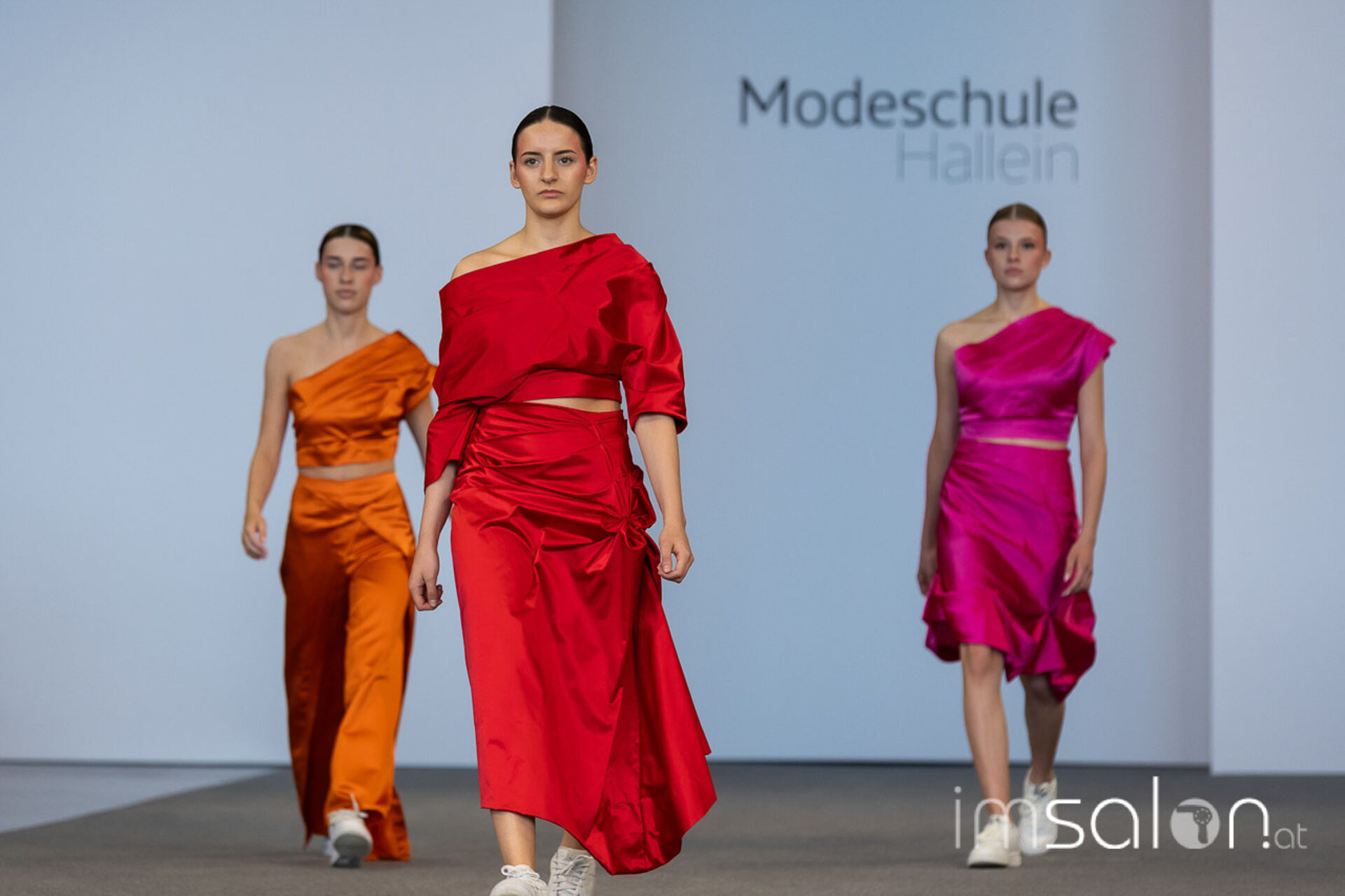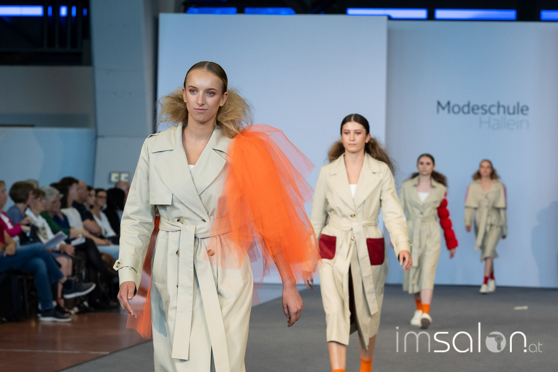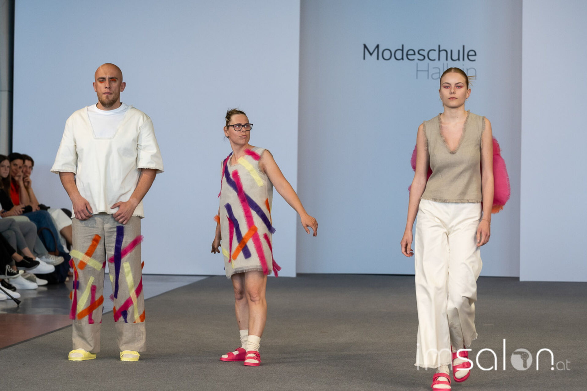 Bei der großen Fashion-Abschluss-Show im Terminal 2 des Salzburger Flughafens präsentierten die Nachwuchsdesignerinnen und -Designer der Modeschule Hallein ihre Kollektionen. Dabei wurden sie von den Schüerinnen und Schülern des Hairstylung, Make-up & Visagisten Zweiges unterstützt, die das gesamte Styling der Modelle von der Frisur bis zum Make-up übernahmen.