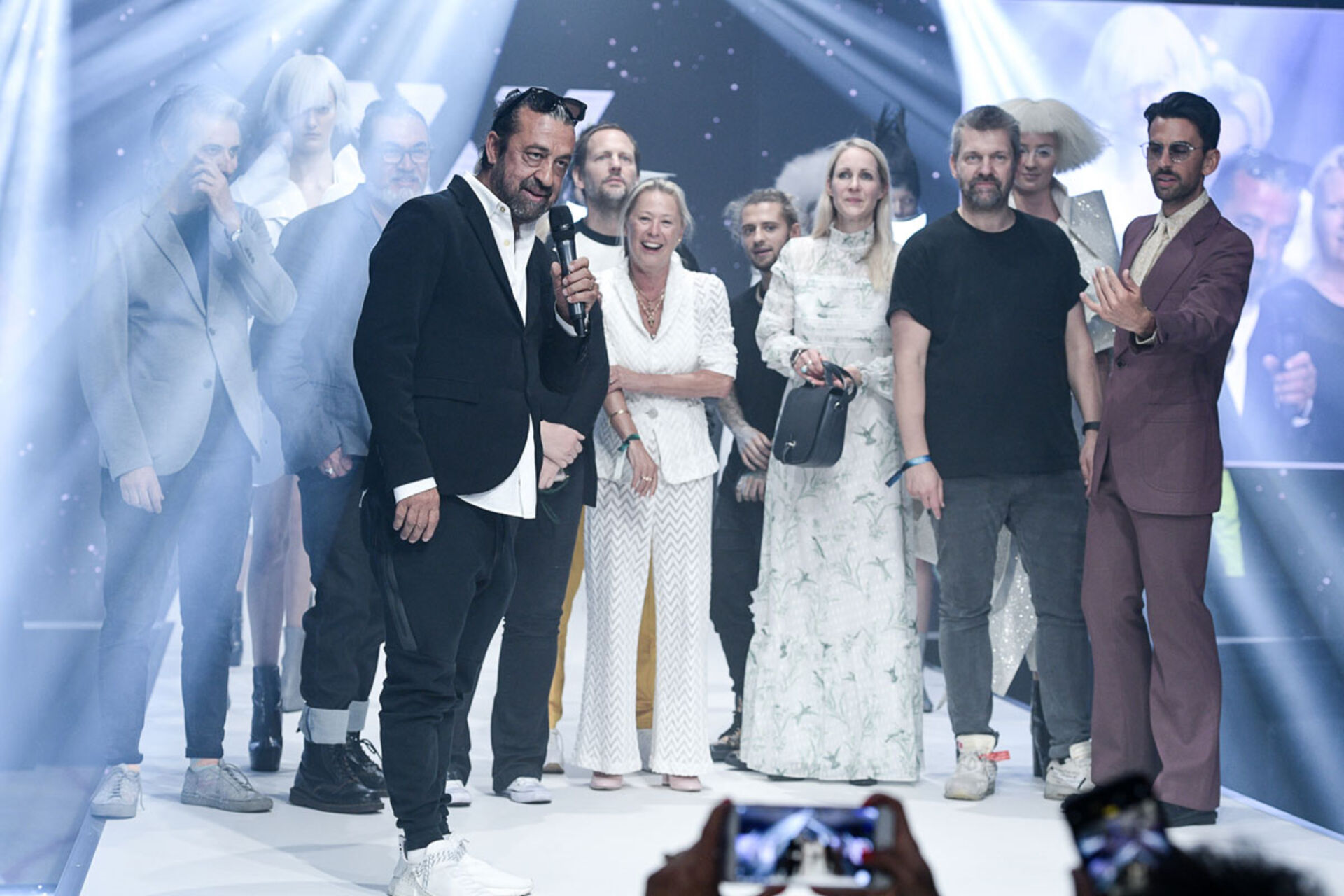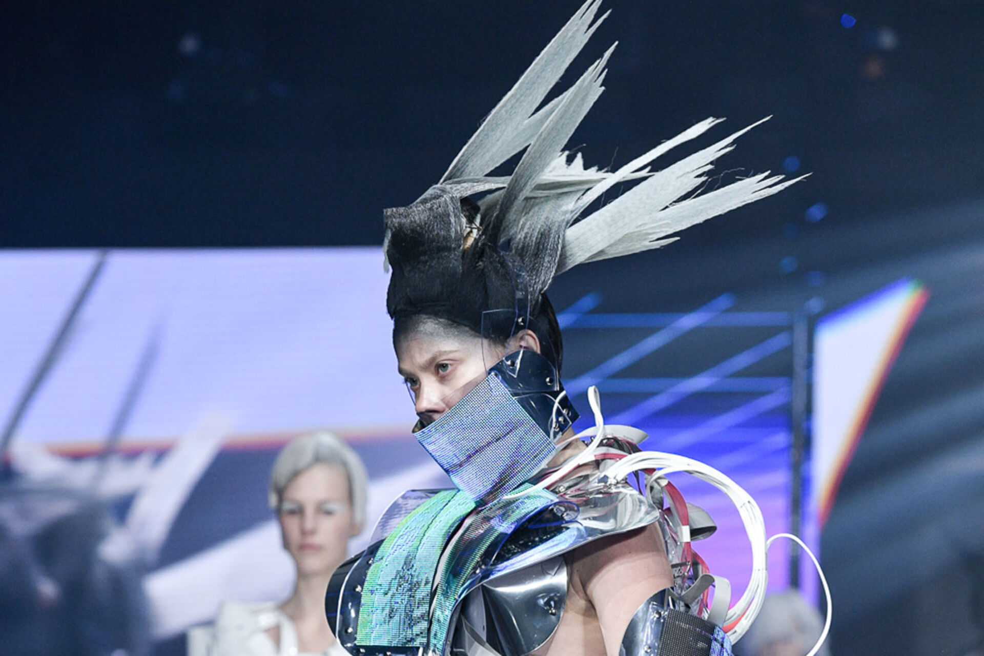 Futuristisches Eventhighlight: 7 Models in Jiv D’s Designer Collection von individuellen futuristischen Haarinterpretationen untermalt.