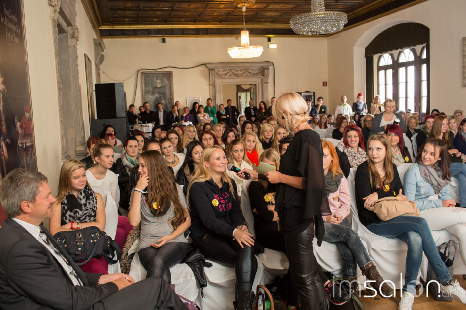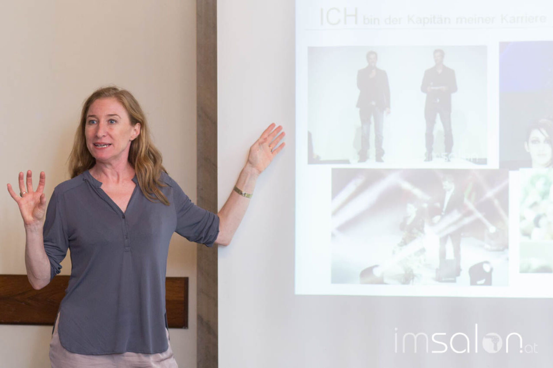 1. Raphaela Kirschnick (Geschäftsführerin friseurjobagent.at | imSalon.at) nahm mit den Lehrlingen den Begriff Karriere auseinander und zeigte anhand vieler erfolgreicher österreichischer Friseur-Karrieren, welche zahlreichen Möglichkeiten die jungen Leute haben.