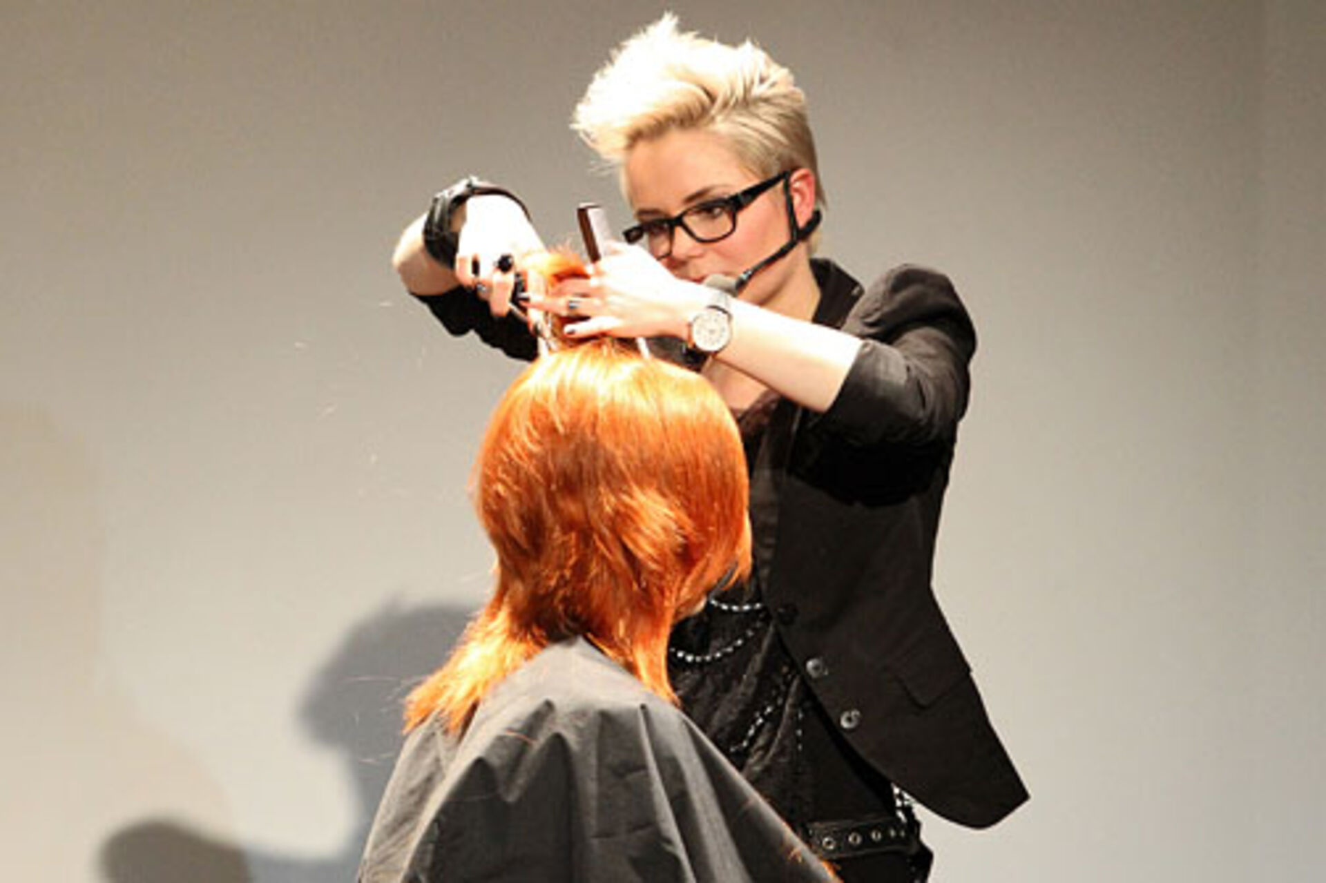 Jens Hagenmüller, Pivot Point Creative Director Deutschland, und Sabrina Holtz, Pivot Point Master Instructor, zeigen im Studio Wien ihre Interpretationen der Trends "Lumina" und "Passionista" in Schnitt, Farbe und Styling.