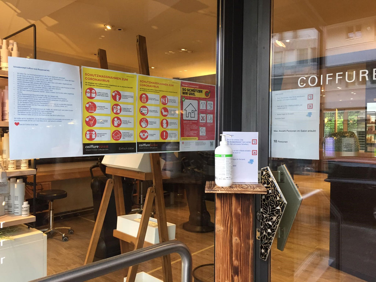 MG: Jeder Salon muss ein Schutzkonzept analog der Vorgaben der Coiffure Suisse für seinen Salon adaptieren. Dieses Schutzkonzept musst du im Salon haben, deine Angestellte müssen es lesen und unterschreiben. Unsere Salontür ist zugepappt mit Verhaltensregeln (lacht). Ob die jemand liest, keine Ahnung. Hauptsache, sie hängen da! Da gab es gestern bei Kollegen auch schon die ersten Kontrollen vonseiten des Gesundheitsamtes bzw. der Gewerkschaft. (► Das Schutzkonzept gibt es unten als Download!)